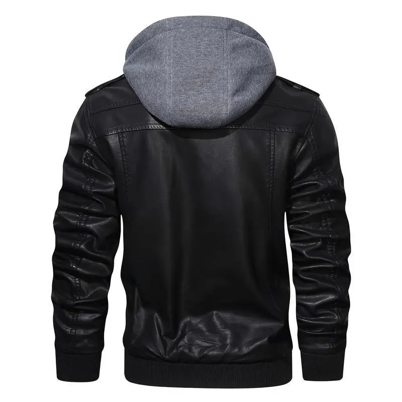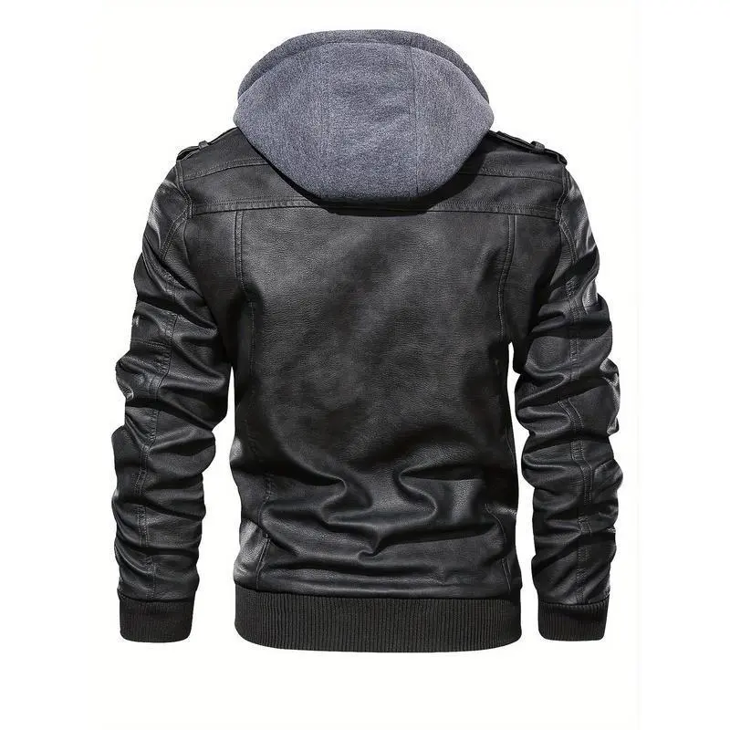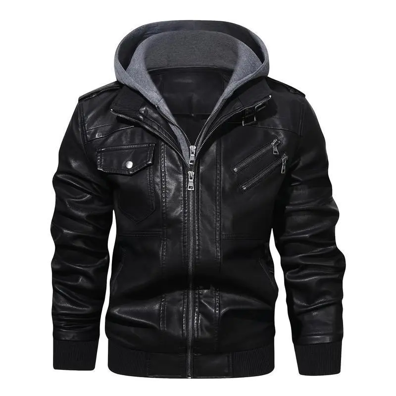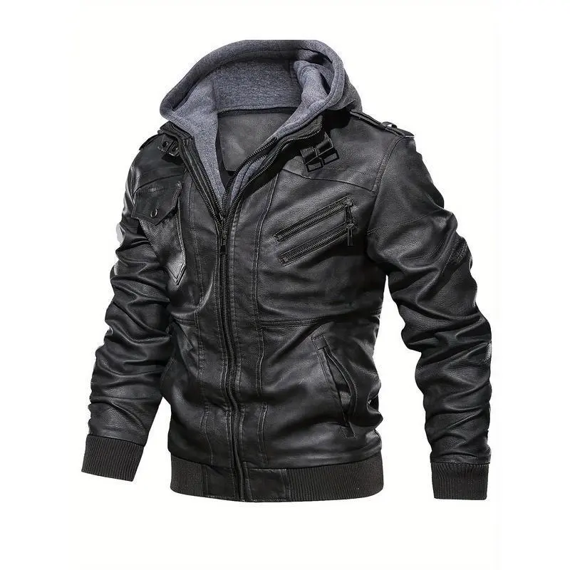 Premium Mens Hooded Leather Jacket - Fashionable Biker Style with Chic Multi Pockets, Durable Soft-shell for Casual Comfort