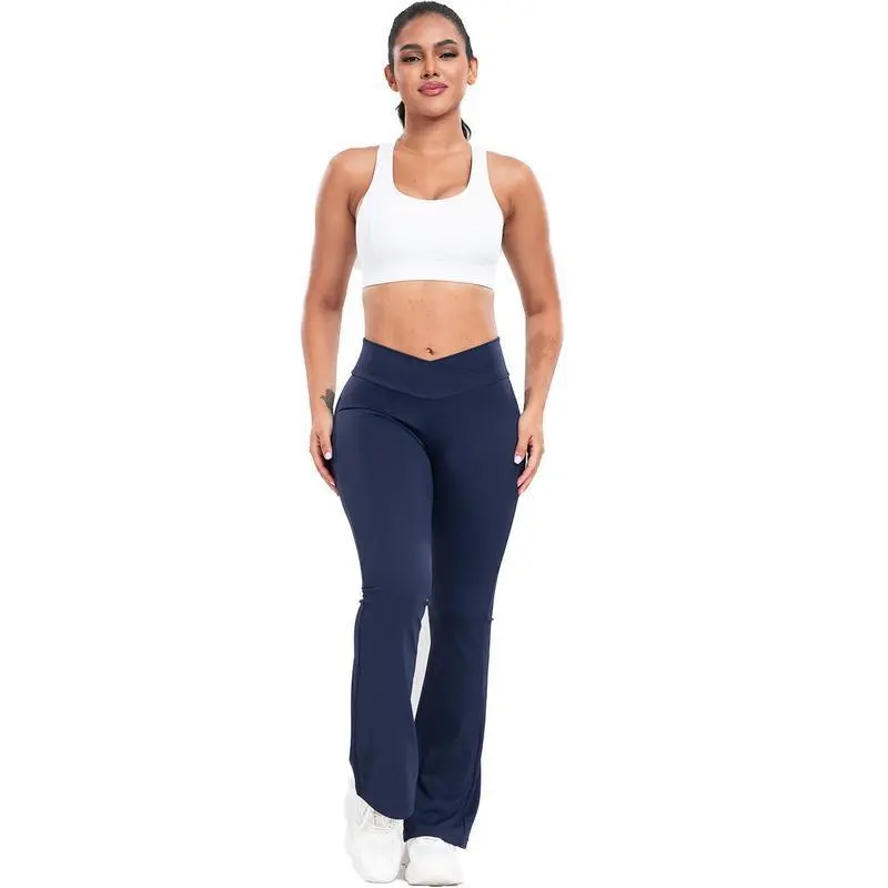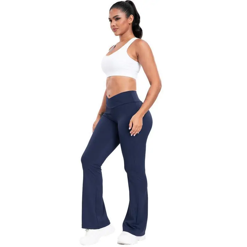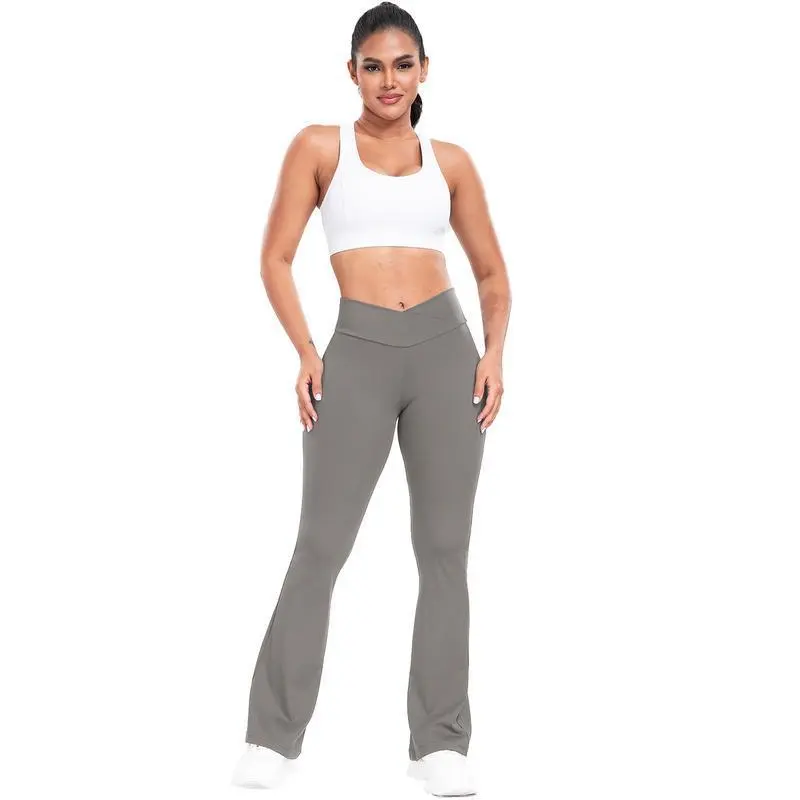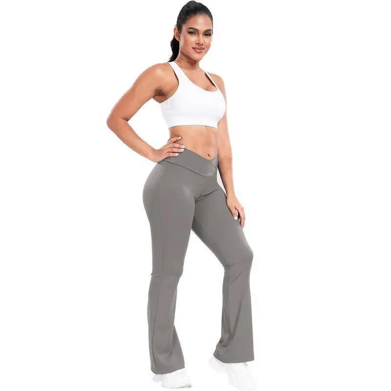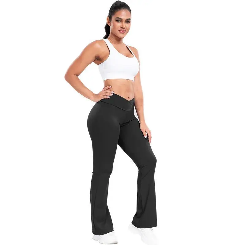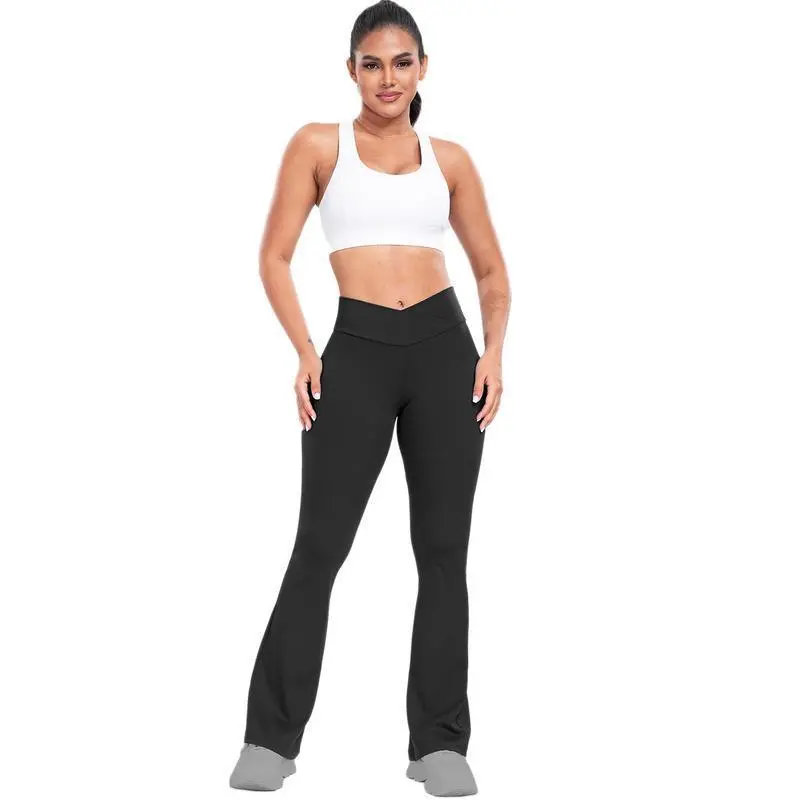 OQQ Women's 2 Piece Flare Leggings High Waist V Shirring Seamless Butt Lifting Tummy Control Wide Leg Gym Casual Workout Yoga Pants