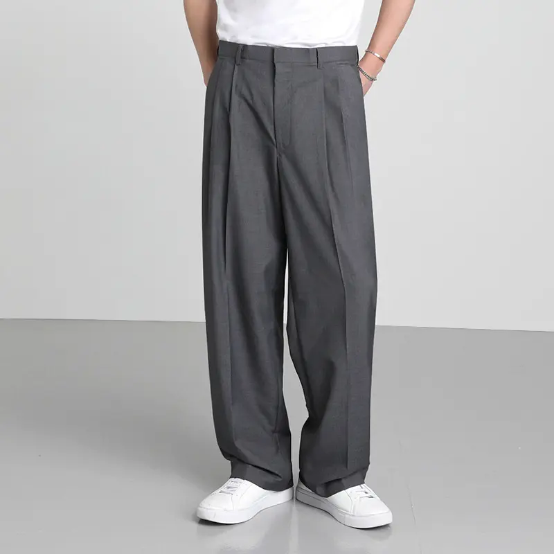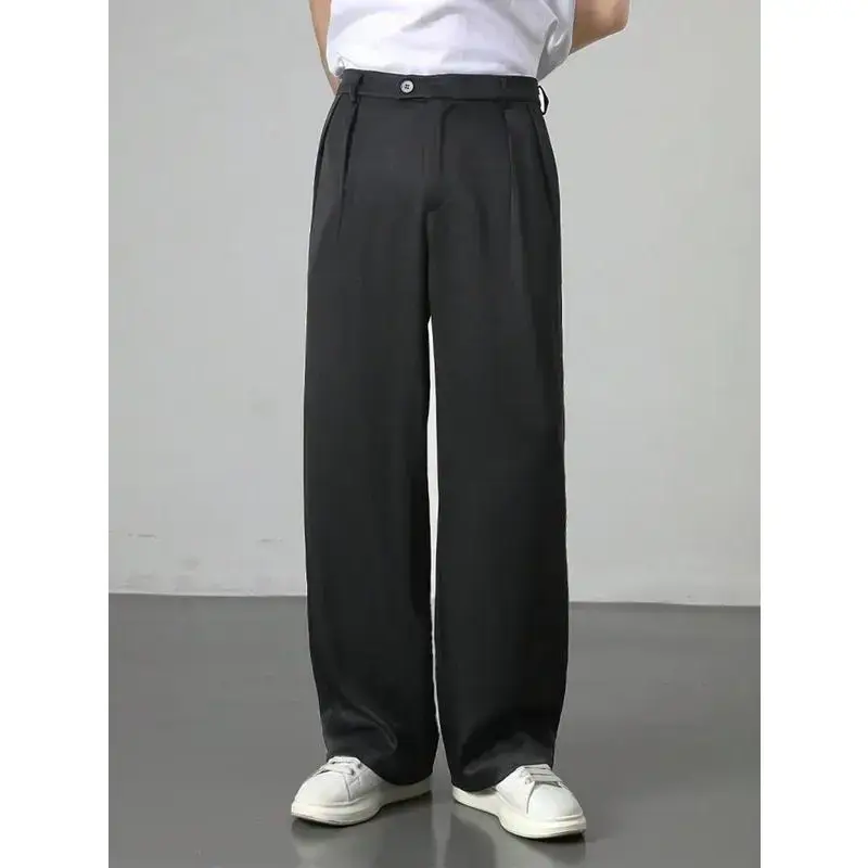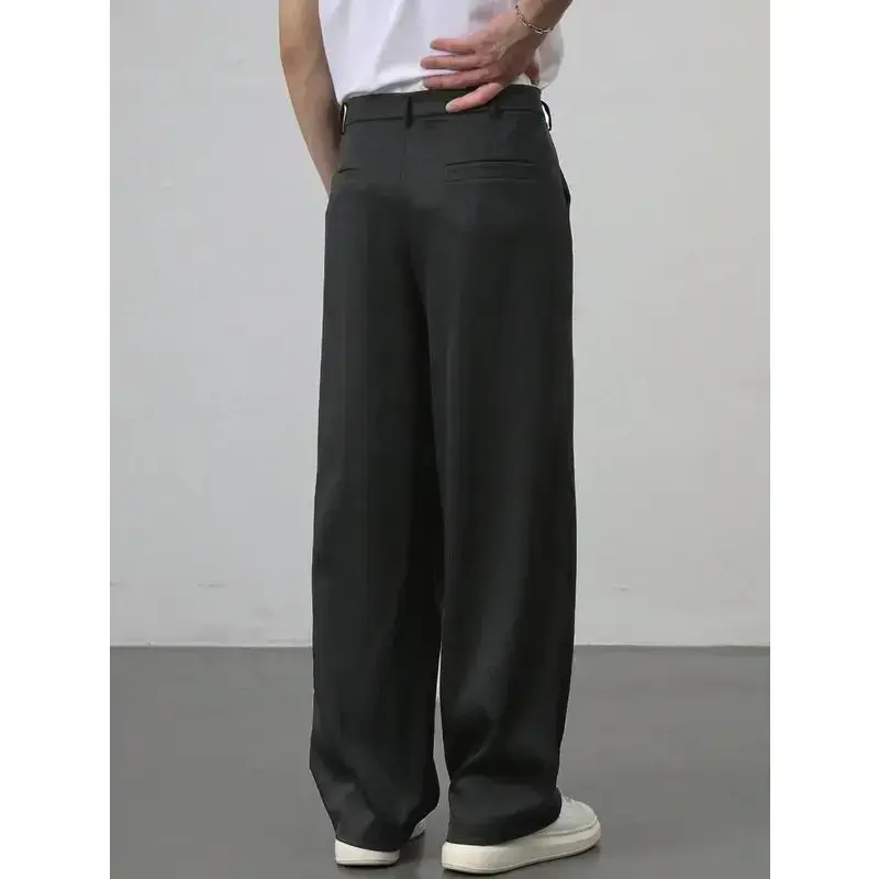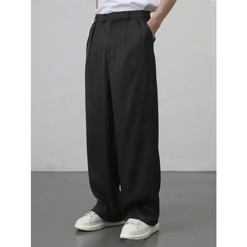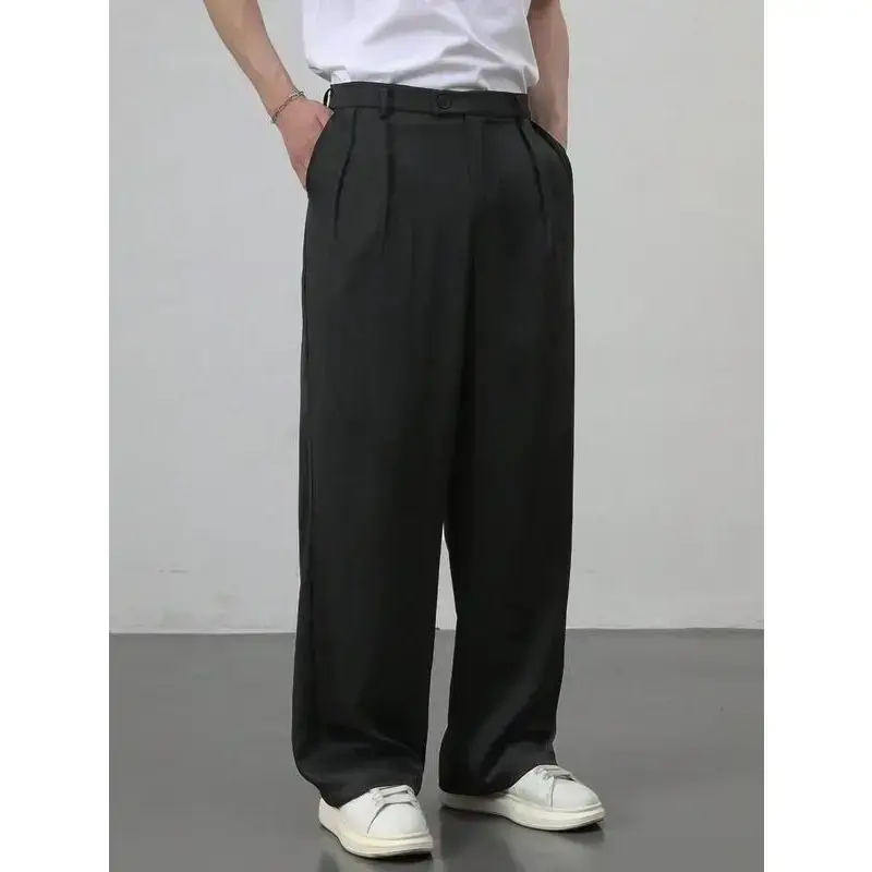Men Black Pleated Slant Pocket Straight Leg Loose Fit Casual Commuter Suit Pants Fabric Menswear Trouser Plain Beige Tropical Can be used with raincoat