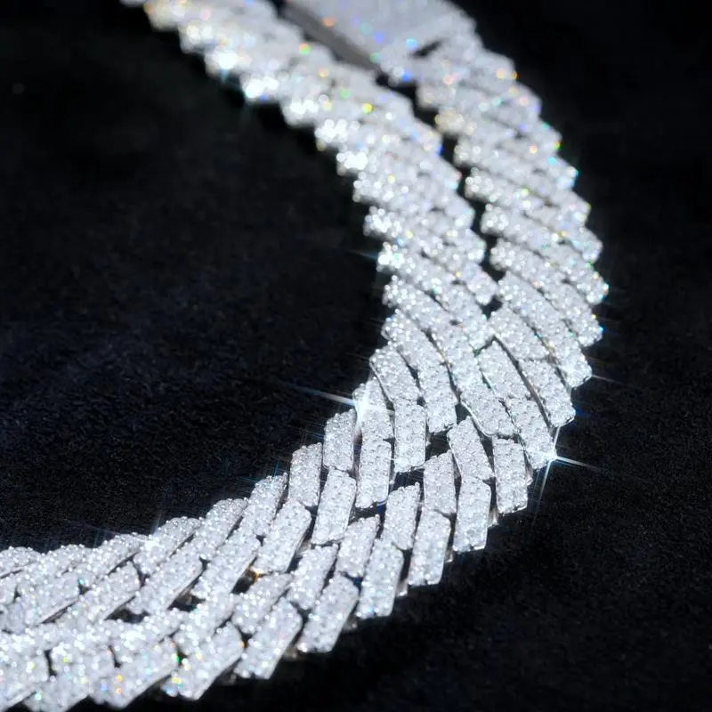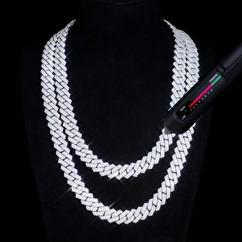 Moissanite 10MM Prong Cuban Link Chain Sterling Silver Pass Test Lab Diamond Necklace Valentine's Day Gift For Him (Storage Boxes)nice