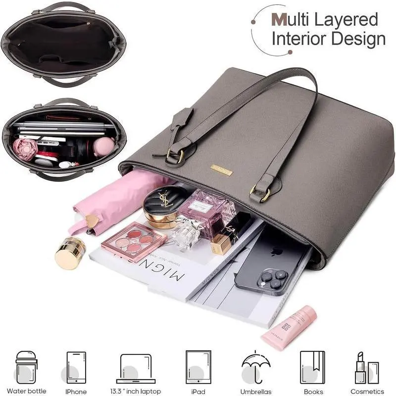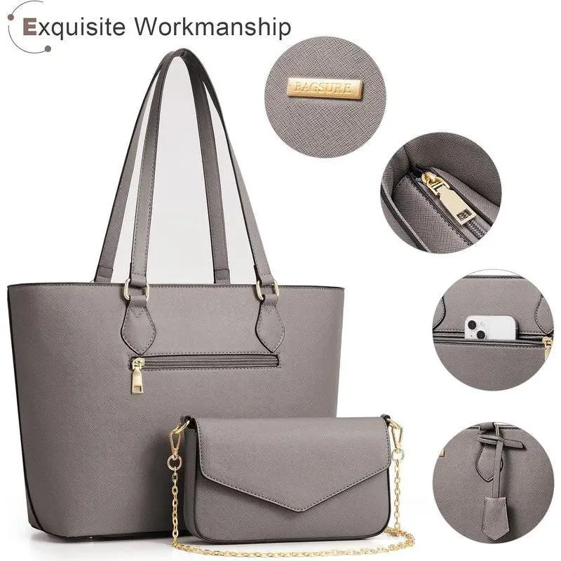This stylish and practical purse set is designed to meet all your needs.It can be used as a handbag, crossbody, shoulder bag, or tote, making it perfect for any occasion-dating, shopping, work, travel, or parties. Fashionable & Durable Design Crafted from high-quality synthetic leather, this purse features smooth stitching, a sturdy structure, and a soft, wrinkle-free finish.It��s eco-friendly, odor-free, and maintains its shape over time. Built to Last Upgraded with reinforced straps, non-slip zippers, and premium gold-tone hardware, this bag is both durable and elegant.The flat bottom studs and tear-resistant lining ensure long-lasting use. Spacious & Functional The large tote fits a 14-inch laptop and A4 documents, while the medium crossbody bag is perfect for sunglasses, cosmetics, and more. Multiple pockets keep your organized. The Perfect Gift This purse set makes an ideal gift for birthdays, anniversaries, Valentine��s Day, Mother��s Day, or Christmas.It��s a thoughtful and practical present your loved ones will cherish.