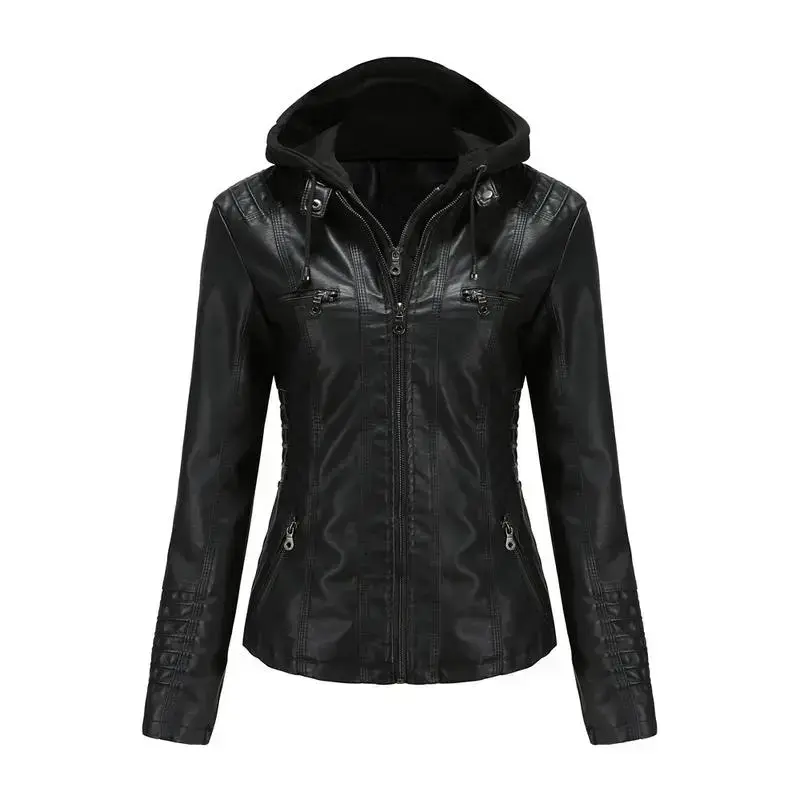 🌟 25 Hooded Leather Jacket Two-Piece Set 🌟 This two-piece set features a detachable large-sized leather jacket for women. Perfect for spring and autumn, it offers versatility in styling. The jacket comes with a stand collar and long sleeves, ensuring comfort and elegance. 🌸 Season and Sleeve Details This leather jacket is ideal for casual outings and commuting. The Tpu composition adds a unique touch to the overall look. Stay stylish and comfortable with this versatile piece. 🌟