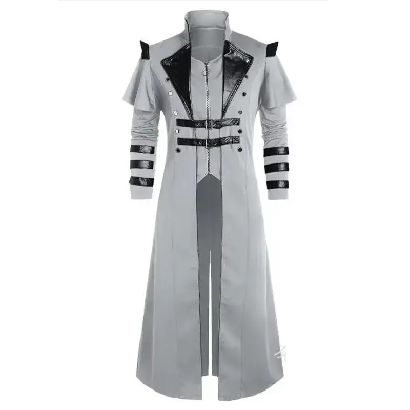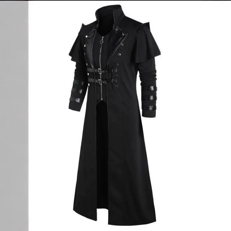 This medieval Renaissance punk long slit coat is an excellent choice for stage performances and creative photography, perfectly blending retro aesthetics with punk spirit.Inspired by the clothing of the Renaissance period, it features a large lapel and puffed sleeves, paired with distressed velvet or coarse linen fabrics, exuding a classical and luxurious charm.Punk elements are strongly injected through metal rivets, chain decorations and leather straps, creating a unique visual tension. The super-long slit design extends from the hem to the thighs. As you move, the hem of the garment flows gracefully, exuding a carefree and unrestrained charm, adding drama and dynamic beauty to the overall look. The three-dimensional cutting conforms to the figure, outlining an elegant contour while ensuring free movement. Whether used for character shaping in stage plays or as the core styling element in retro-themed photography, this coat can instantly create a strong atmosphere, helping you transform into a mysterious traveler through time and space, becoming the absolute focus under the spotlight or in front of the camera. Product weight: 680 grams Size chart: