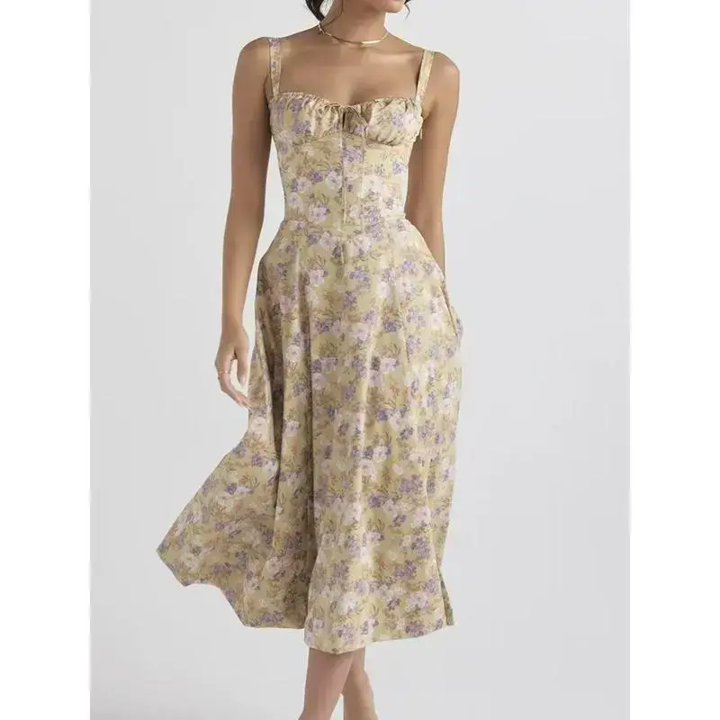【Grace Karin】 Women's Floral Midi Dress Corset Sundresses 2026 Summer Spring Vacation Milkmaid Dresses