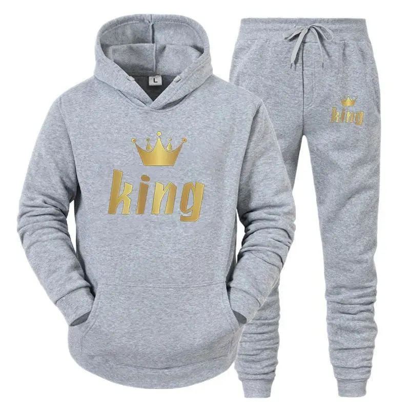 Fashion Long Sleeves KING And QUEEN Printed Hooded Suits Autumn Winter Couple Hoodie + Pants 2-Piece Suit
