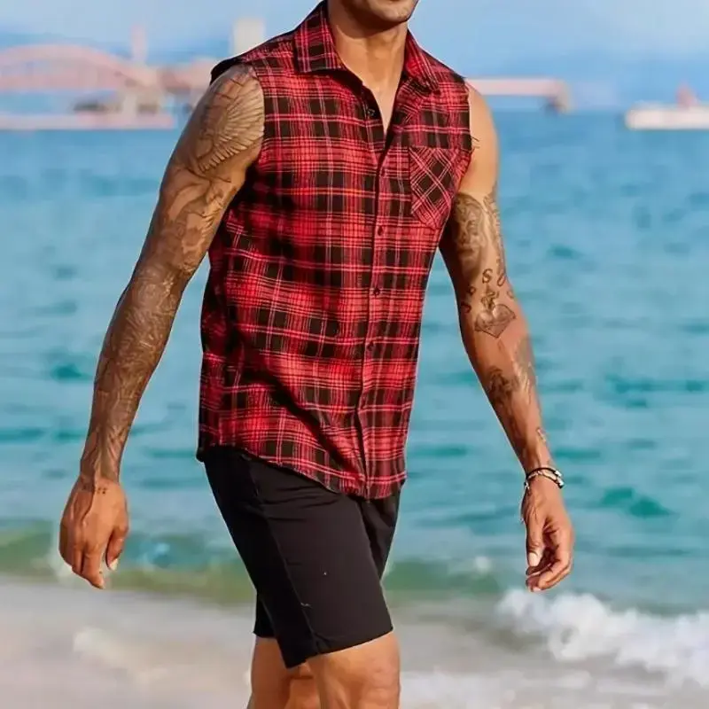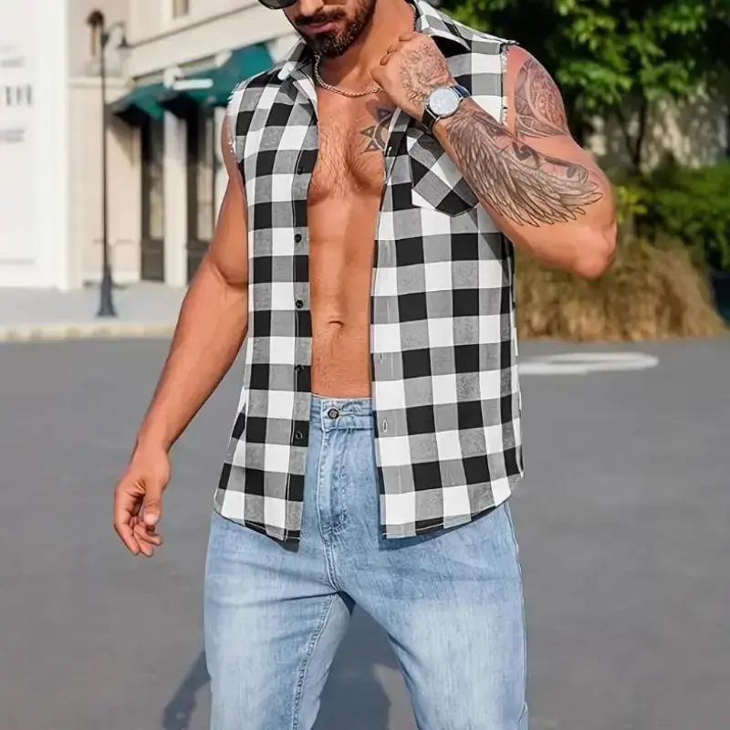 2026 Mens Sleeveless Flannel Plaid Shirts Casual Button Down Muscle Cut Off Shirts Vintage Western Cowboy Vest Tank Tops jean skirt swimming suit vacation outfits men gifts denim tears