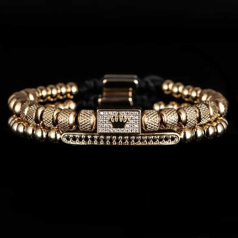 2pcs/Set Customized Charm Crown Bracelet for Men Jewelry Accessory Set