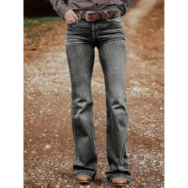 Women's-Waisted Flare Jeans - Non-See-Through Cowboy Bootcut Pants, Machine Washable All-Season Jeans Everyday & Formal Outfits - Western Ranch Style Jeans Women