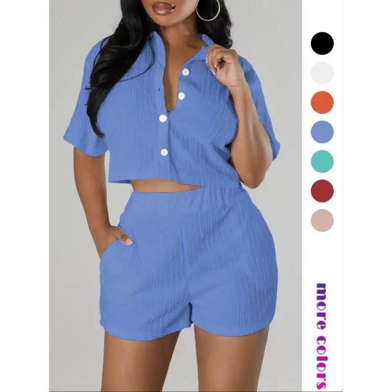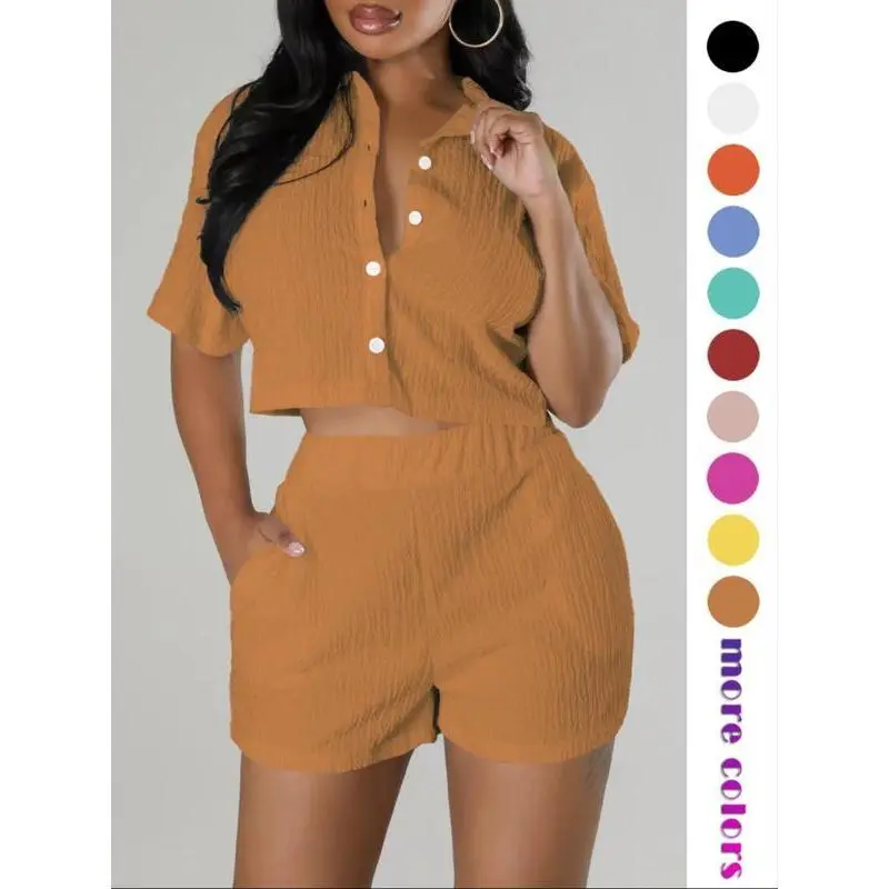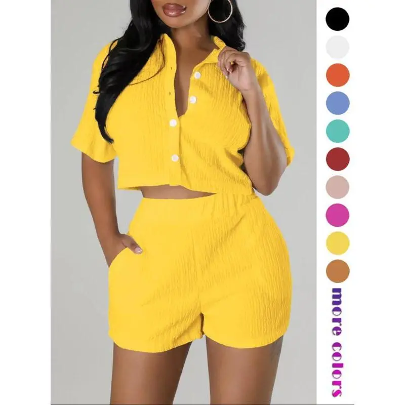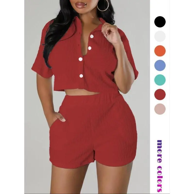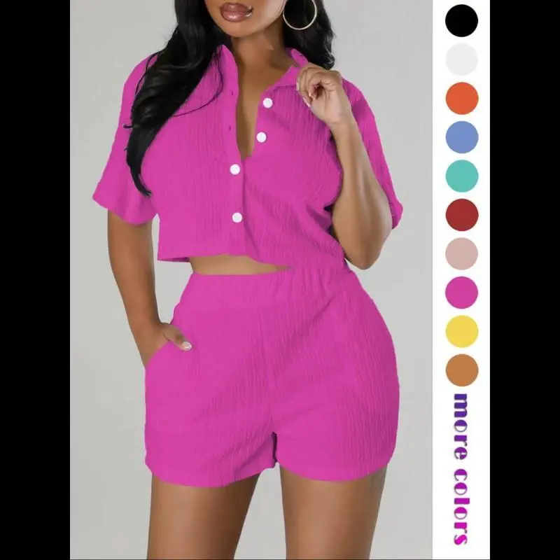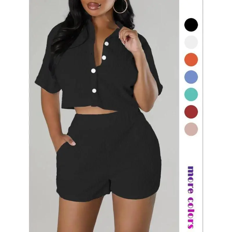 ��Comfort with a Hint of Stretch��: Crafted with a blend of elastane and polyester, this textured button front shirt and elastic waist shorts set offers a fitted yet comfortable wear, with a slight stretch for ease of movement throughout the day. ��All-Season Elegance��: Whether you're stepping out for a casual day or dressing up for a night out, this short sleeve collared top and pocket design shorts set is versatile enough for various occasion. ��Casual Chic��: Exude effortless style with the casual yet chic design of this two-piece set, featuring a sophisticated button front and a relaxed short sleeve collared top, perfect for creating a variety of stylish looks. ��Versatile Colors��: Available in a variety of colors to suit any taste and occasion. ��Luxurious Jacquard Knits��: Indulge in the elegance of jacquard knits, a fabric renowned for its intricate textures that elevate your two-piece set with a touch of sophistication.