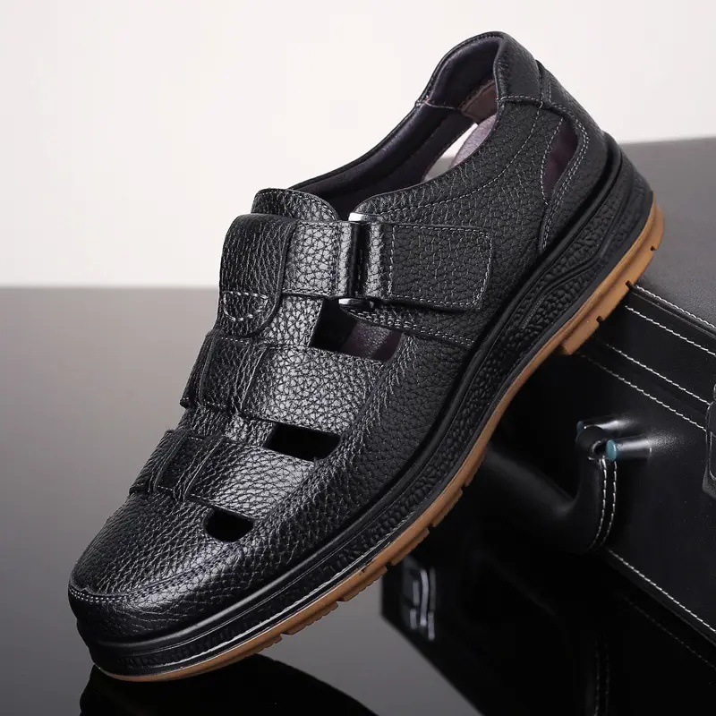 Men'sTopCowhideLayerHollowOutCasualShoes,SlipOnNonSlipComfyOutdoorWalkingShoes,BusinessTripTravelingFootwearBoyWomenBlackSuedeClogSlidesComfortableSandalSummerLeather