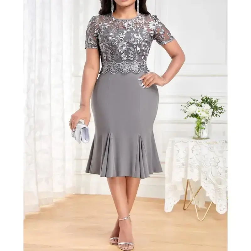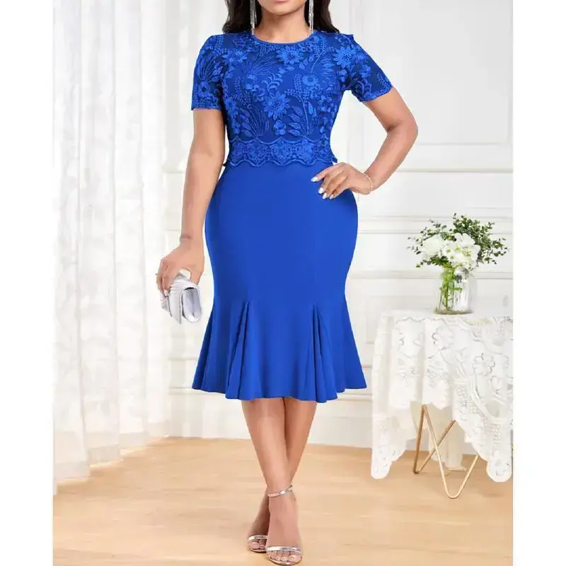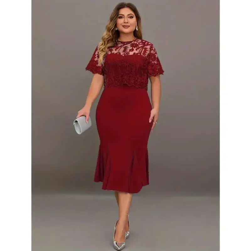 Stylish Design:This dress features a chic and sophisticated design, perfect for the modern woman. Its stylish cut emphasizes your figure, making you look slimmer and more attractive./High Quality Material:Made from 95% or more of polyester, this dress offers durability and comfort. It's also easy to clean and maintain, making it a practical choice for everyday wear./Versatile Style:With its elegant and sophisticated style, this dress is versatile enough for various occasions. Whether you're going to work or out for a casual day, this dress is the perfect choice./Plus Size Availability:This dress comes in plus sizes, catering to a wide range of body types. It ensures a comfortable fit for everyone, enhancing their natural beauty./Embroidery Detail:The dress is adorned with intricate embroidery details, adding a touch of elegance and sophistication to your outfit. It's a perfect blend of fashion and style.