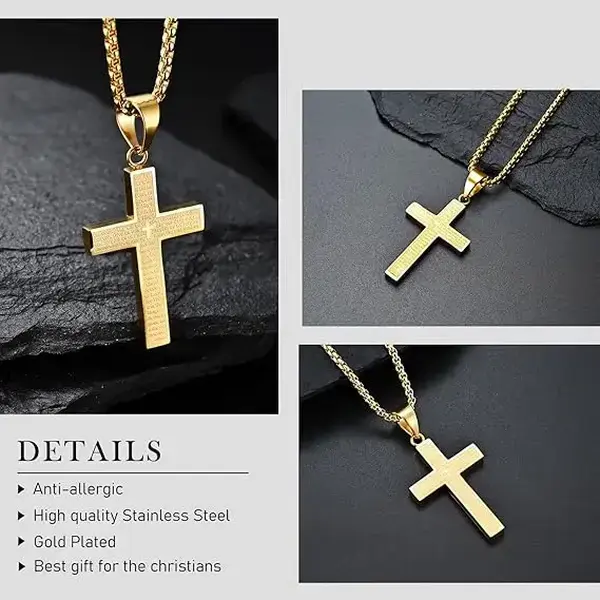 【Titanium Steel Material】Due to this material, it is rust-proof, does not fade, waterproof and sweat-resistant, it is very durable and strong. You don't have to worry about when and how you wear it. Always wear it. 【Cross Pendant Dimensions】Pendant Height:4.5cm x Width:2.8cm. 【Chain Length】Chain length: 60 cm, Chain width: 3 mm.【Ideal Gift】Perfect for men, boys, party gifts, birthday gifts, Easter, Christmas gifts, accessories for religious activities