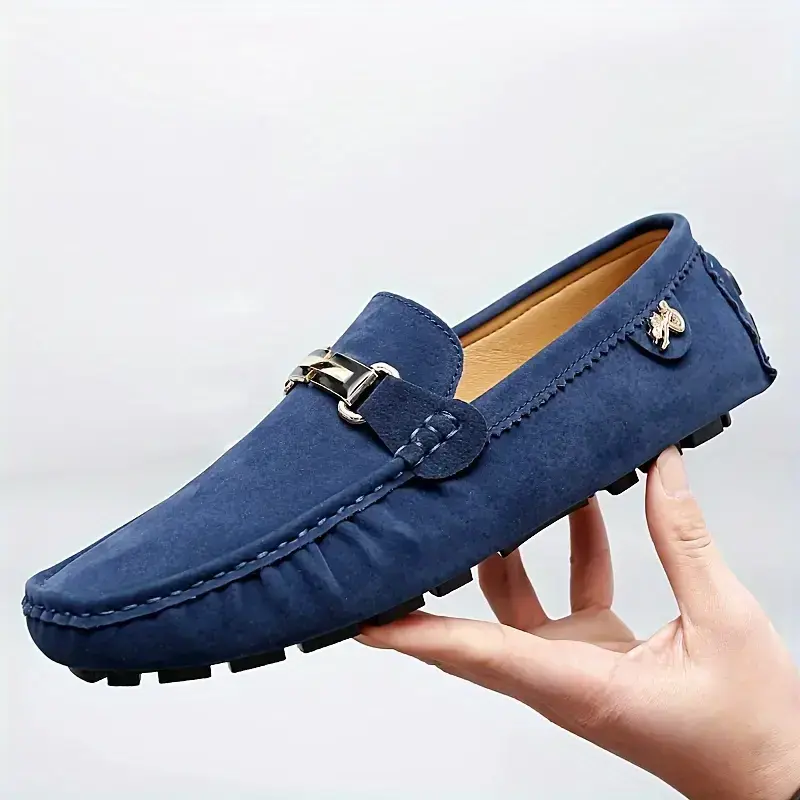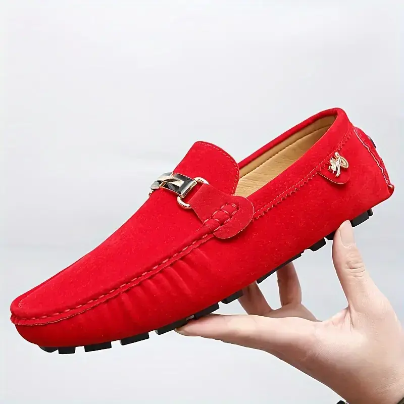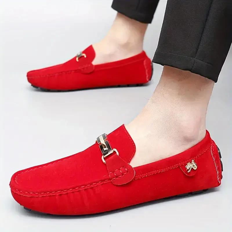 2025 New Trendy Men'S Buckle-Decorated Loafers, Slip-On Driving Shoes, Flat Boat Shoes, Comfortable Soft-Soled Non-Slip Solid Color Shoes