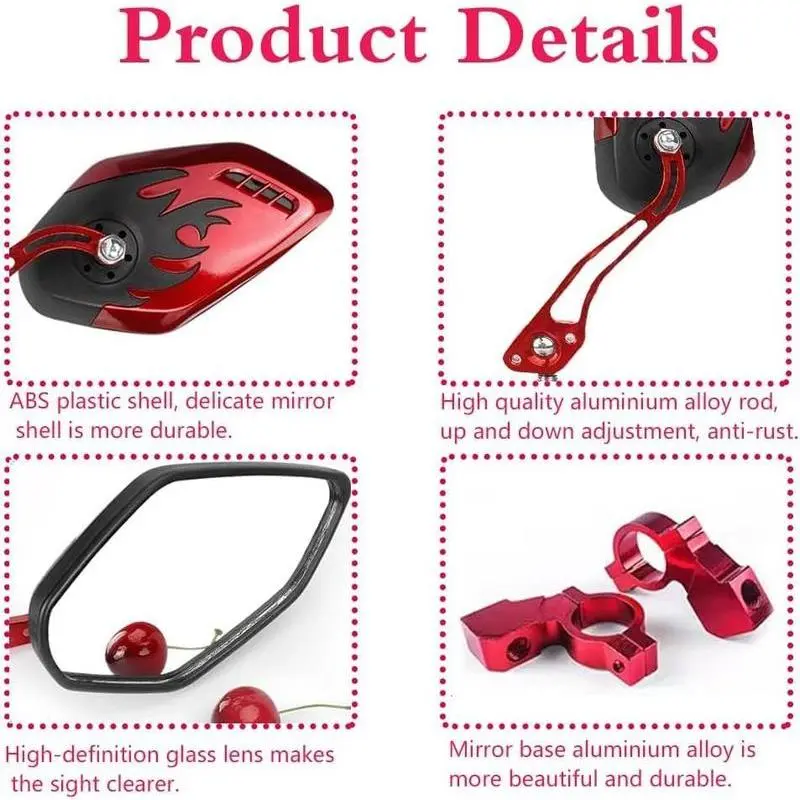 WIDE VIEWING: mirrors for handlebars for wide viewing and image stablilization; Good quality mirror, durable with all weather resistant Materials STURDY AND DURABLE: The mirror comes with ABS optical frame and alloy which provide absolute protection to the mirror against breakage due to some slight bumps FULL ANGULAR ADJUSTMENT: Our bicycle mirrors for handlebars is built to rotate 360°for maximum coverage WIDELY APPLITY: The bicycle mirror suitable for handlebars within 22-25 mm,Fits , Street EASY TO INSTALL:With simple instructions and all necessary hardware included; these mirrors can be installed in minutes for immediate use