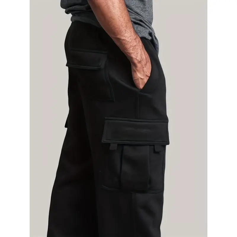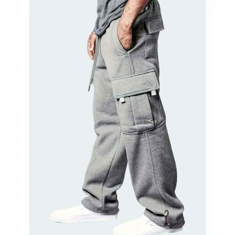 2pcs, Men's Solid Loose Fit Cargo Pants With Multiple Flap Pockets, Casual And Classic Sweatpants For Sports Outdoors Activities, Winter & Fall Holiday gifts Ideal Gift for Fabric Menswear Polyester Stretch Trouser Beige