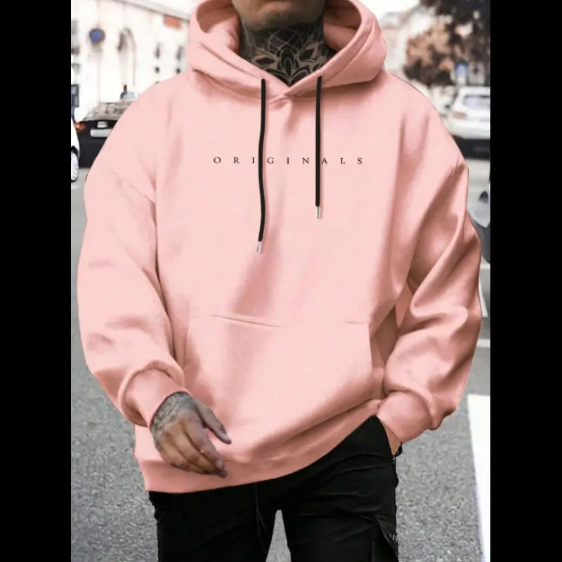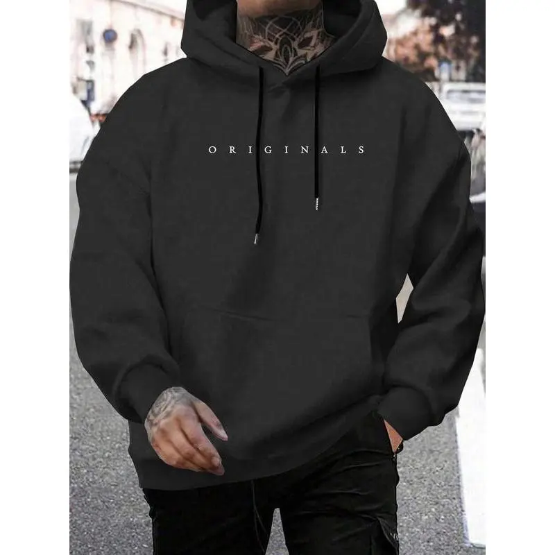 Men's Letter Print Drop Shoulder Hoodie, Fashion Casual Regular Fit Drawstring Pocket Hooded Sweatshirt for Daily Holiday Outdoor Wear, Men Clothes for Fall & Winter