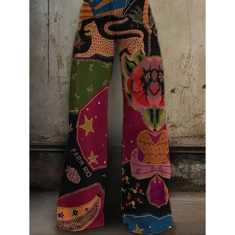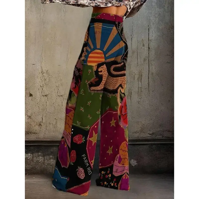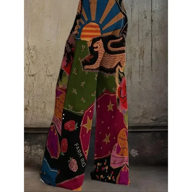[1 Pair Retro Polyester Pants] Polyester Women's High Waist Loose Flared Pants | Casual Retro Style, Creative Retro Element Print, Regular Fit Loose Jeans For Adults, Suitable For All Seasons, 1 Pair high waist jean woman
