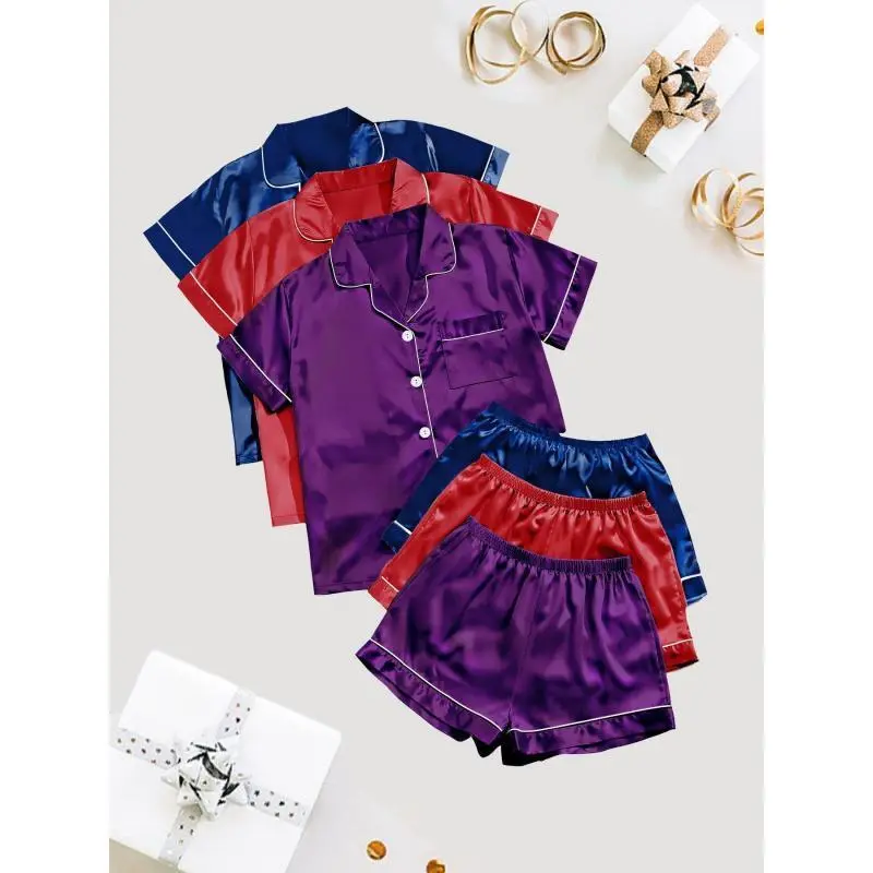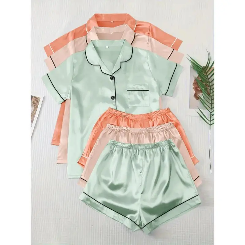 Inseam Style:CasualWeaving Method:WovenComposition:PolyesterDesign:Elastic WaistWashing Instructions:Do Not Dry Clean,Machine WashableFit:FittedStyle:CasualSeason:SummerSleeve length: short sleeveNeckline:LapelQuantity Per Pack:6Region Of Origin:ChinaPattern:PlainMaterials:Satin The Ultimate Luxury Sleep Experience: Silky Smooth Comfort with Timeless Style Indulge in nightly relaxation with Mikov's women's solid satin pajama set - the combination of luxurious fabric and classic design.This premium sleepwear set features a short-sleeve button-front shirt with lapel detailing and contrast-binding shorts, creating an outfit that's as beautiful as it is comfortable. ** Why Women Love This Satin Pajama Set:Luxurious Satin Fabric - Silky smooth texture that feels amazing against your skinElegant Button-Front Design - Sophisticated shirt with delicate lapel detailingContrast-Binding Shorts - Stylish accents that elevate the overall lookBalance of Comfort & Style - Designed for both restful sleep and loungingSolid Color Sophistication** - Timeless hue that never goes out of fashion
