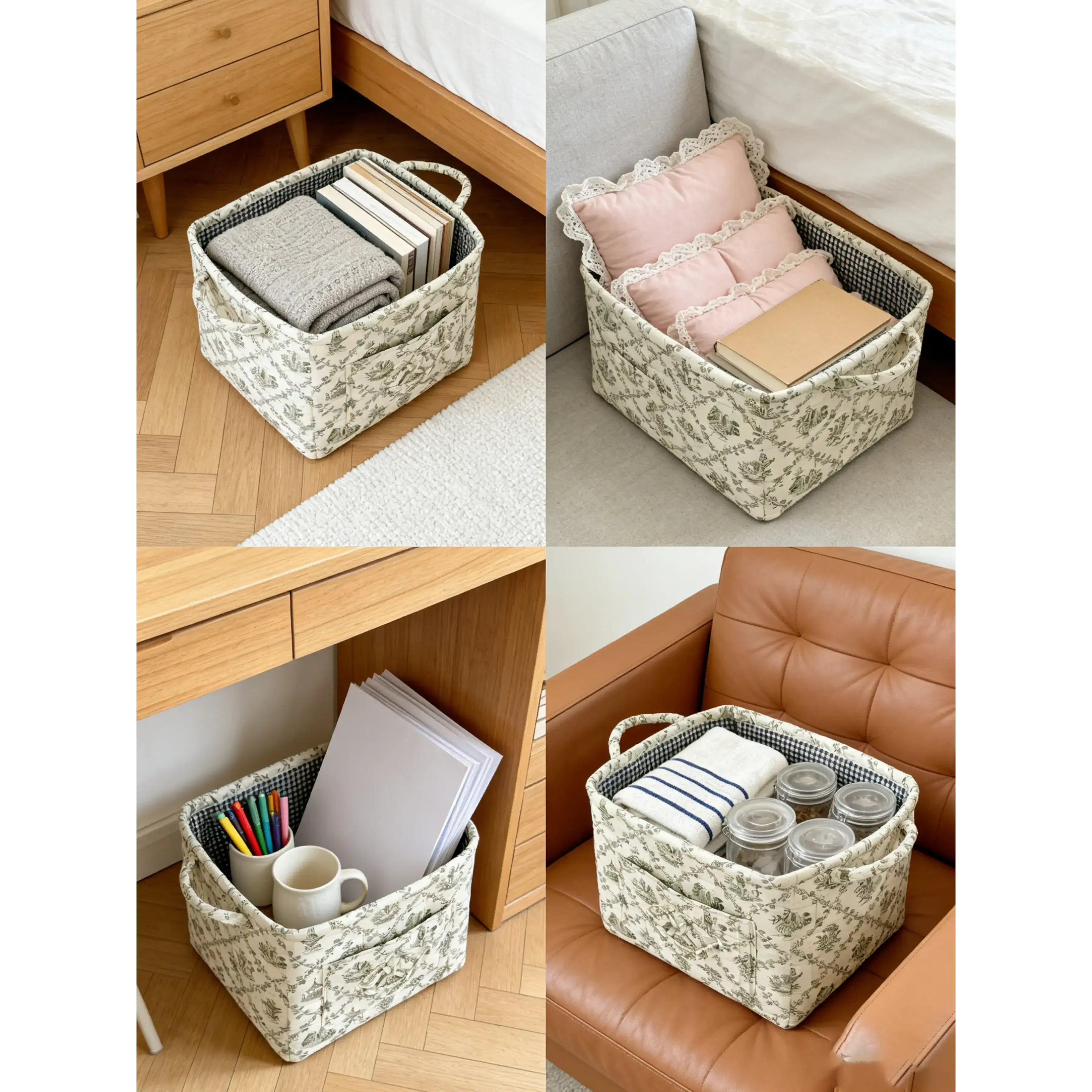 【Organizational Efficiency】: Features a multi-functional storage basket that helps manage clutter effectively in any space. 【Foldable Convenience】: Easily collapsible for storage, this basket simplifies organization and saves space when not in use. 【Seasonal Versatility】: Designed for use in all seasons, adapting seamlessly to varying storage needs throughout the year. 【Nature-Inspired Pattern】: Showcases a plant theme that adds a natural touch to your living areas, enhancing decor and ambiance. 【Multi-Room Use】: Well-suited for both living rooms and bedrooms, this storage solution meets diverse organizational needs.