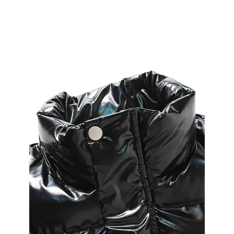 Wintry Faux Leather Hooded Puffer