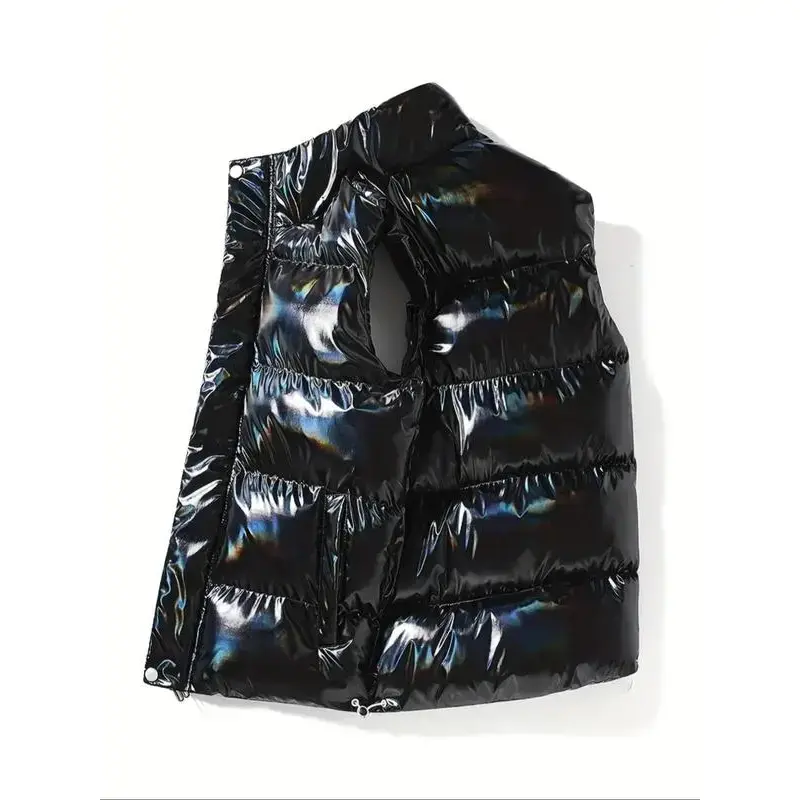 Men'sSolidColorThermalLinedPufferVestCoat,RegularFitCasualFashionablePaddedGiletOuterwearforFall&Winter,Men'sClothesforDailyWear,VintageClothing Menswear Tops