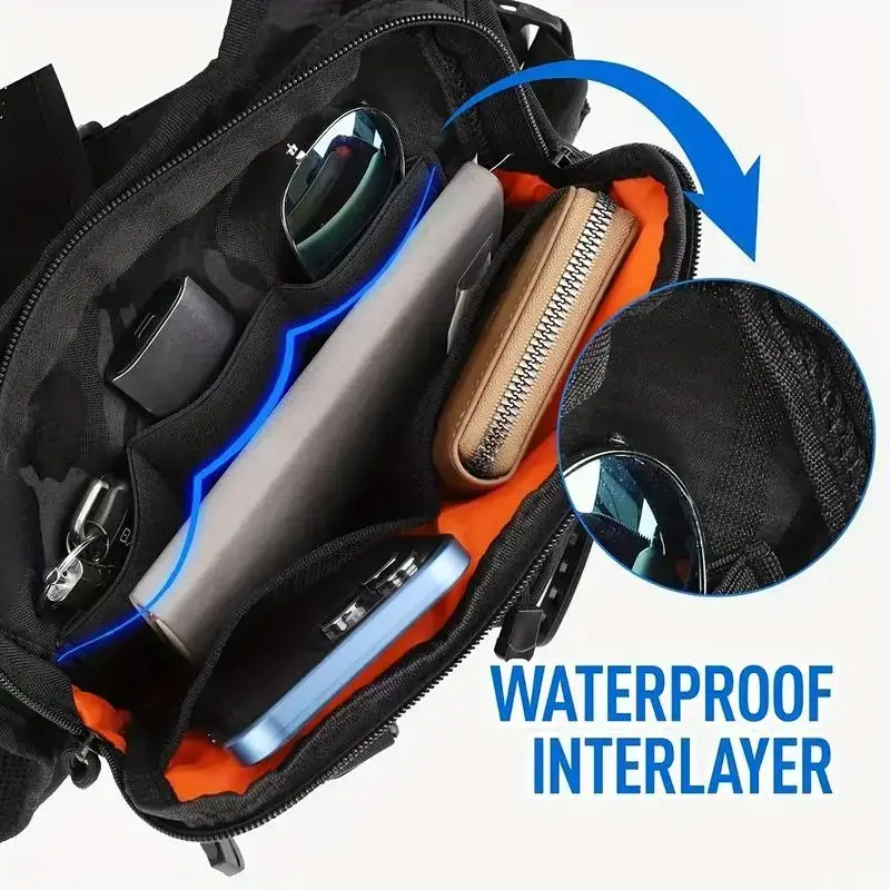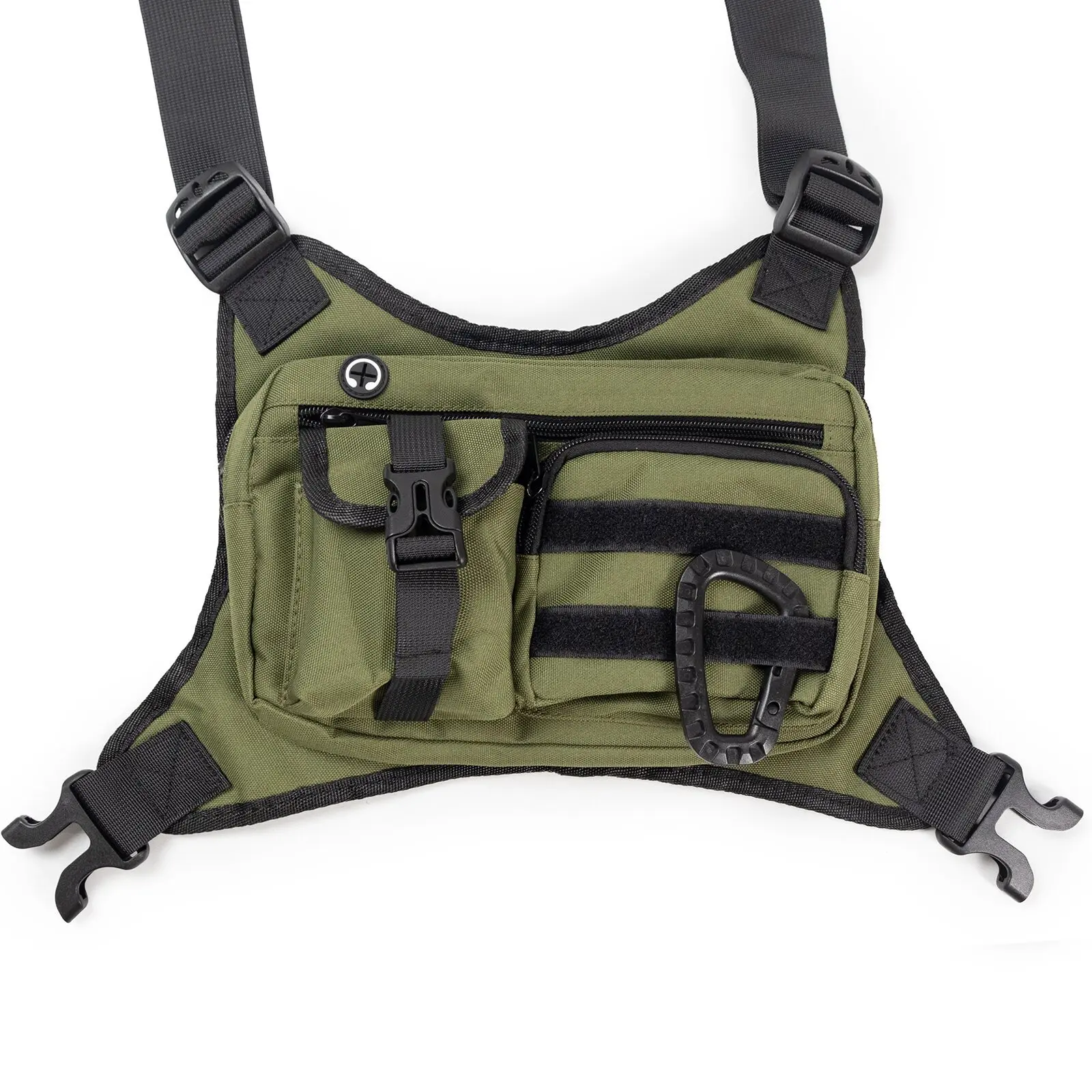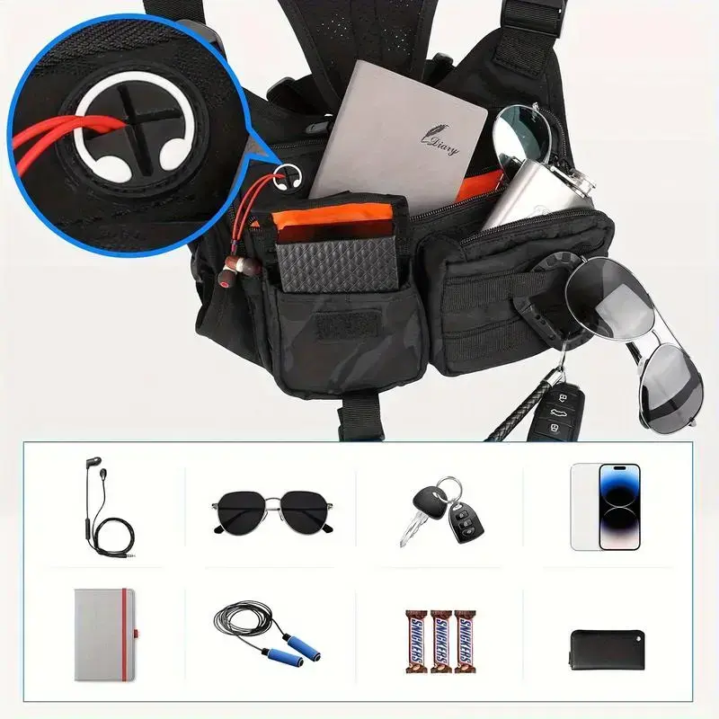 Portable, comfortable, and convenient: Our chest pack is a great choice for sports utility. Measuring 10.2" x 6.3" x 2.5", it features Molle webbing and a climbing buckle design. Whether you're strolling in the park or working out at the gym, our essentials-like your phone, earbuds, and wallet-are within reach and adjustable to fit your body. The chest pack comfortably sits on your arm and torso with four adjustable wide elastic straps and multiple compartments for easy storage. Designed with three unique pockets tailored to your daily needs, this running vest offers ample space for all your gear. Its multi-compartment layout ensures quick access to everything you need, saving time searching and freeing up more sweat sessions.