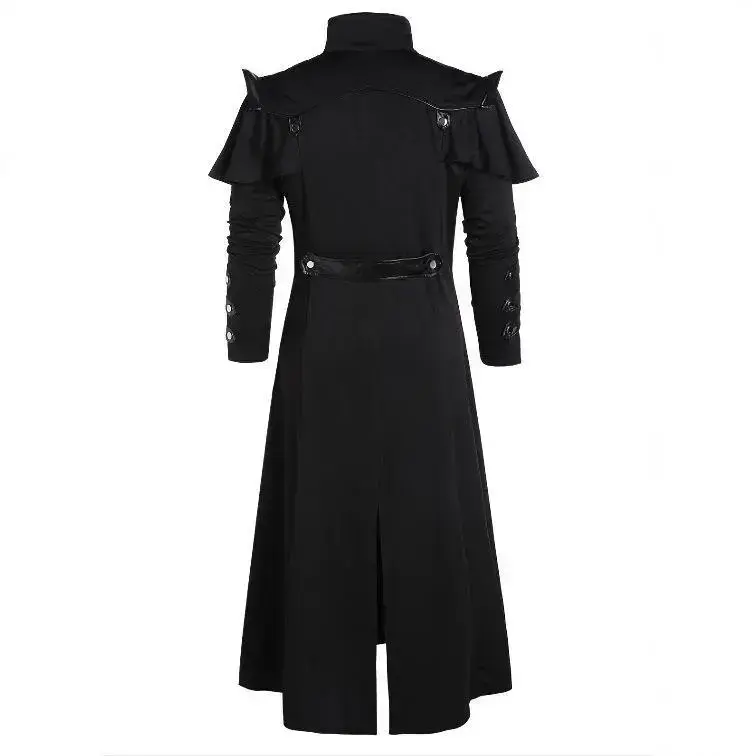 This medieval Renaissance punk long slit coat is an excellent choice for stage performances and creative photography, perfectly blending retro aesthetics with punk spirit.Inspired by the clothing of the Renaissance period, it features a large lapel and puffed sleeves, paired with distressed velvet or coarse linen fabrics, exuding a classical and luxurious charm.Punk elements are strongly injected through metal rivets, chain decorations and leather straps, creating a unique visual tension. The super-long slit design extends from the hem to the thighs. As you move, the hem of the garment flows gracefully, exuding a carefree and unrestrained charm, adding drama and dynamic beauty to the overall look. The three-dimensional cutting conforms to the figure, outlining an elegant contour while ensuring free movement. Whether used for character shaping in stage plays or as the core styling element in retro-themed photography, this coat can instantly create a strong atmosphere, helping you transform into a mysterious traveler through time and space, becoming the absolute focus under the spotlight or in front of the camera. Product weight: 680 grams Size chart: