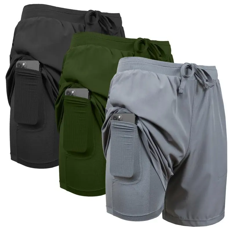 3-PackMen's2in1StretchActiveQuickDryGymRunningShortsWithLiner