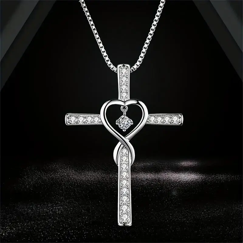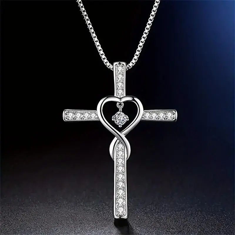 Sterling Silver Cross Pendant Necklace - Allergy-proof, Nickel-free, Inset Zircon, Women Have Classic Faith Prayer Design, Faith Gift, Fashion Chain Necklace With Lobster Buckle Christmas Gift Black Friday Deals undefined raptors ring(gift)Gift