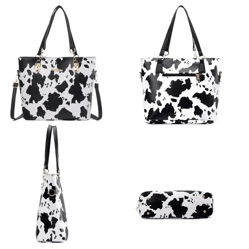 🎨 Elegant Cow Pattern Tote Bag Set This 6pcs set includes a tote bag, shoulder bag, and crossbody bag. The PU material ensures anti-fouling and wrinkle resistance. The cow pattern adds a unique flair. Perfect for everyday use, these bags are versatile and practical. 🐄 🛍️ Versatile Bag Options 📦 Complete Set This set offers a variety of bags to suit different needs. The cow pattern design makes it stand out. Ideal for those who prefer functional and stylish accessories. 🎨 🛍️ Product Highlights