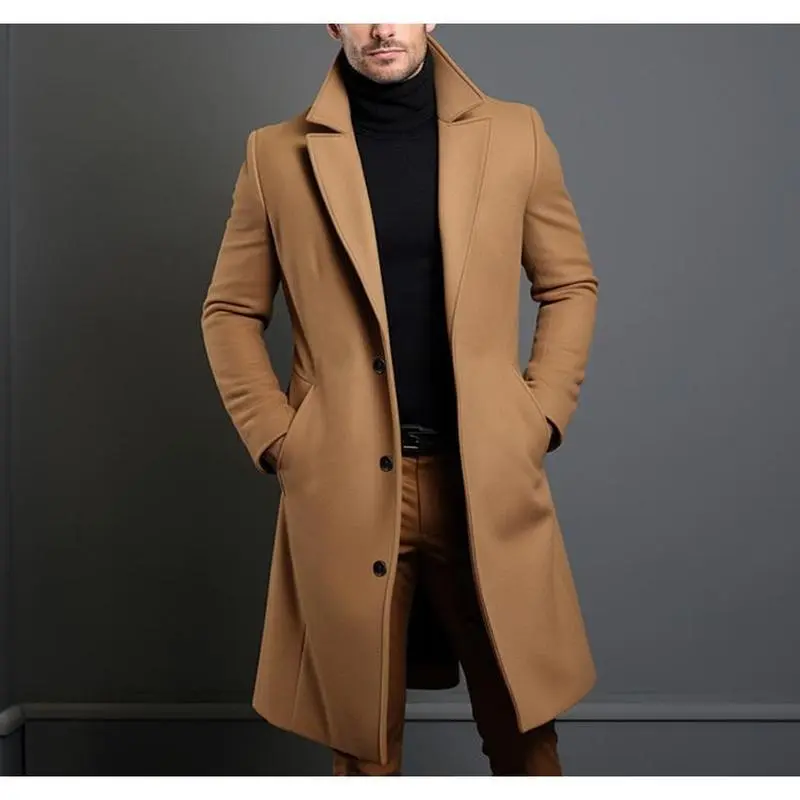 Woolen Coat Men's Mid-Length Solid Color ? Elevate your style with our Woolen Coat! This mid-length overcoat is perfect for autumn and winter. Available in vibrant colors like Black, Dark Blue, Dark Gray, coffee, Light Gray, Wine Red, and Army Green. Choose your favorite hue to match your look. ?? Versatile and Warm This woolen coat is designed for warmth and style. It's a versatile piece that can be worn in various settings. Stay cozy and fashionable this season. ??