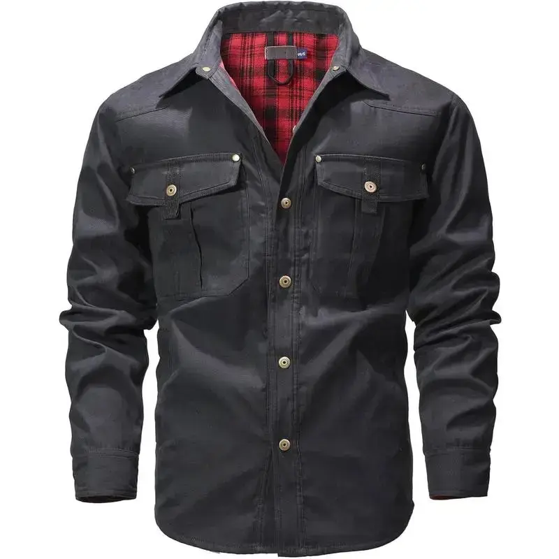 Men's Flannel Lined Shacket Jacket Plaid Brushed Lining Cowboy Western Twill Outdoor Shirt Jacket