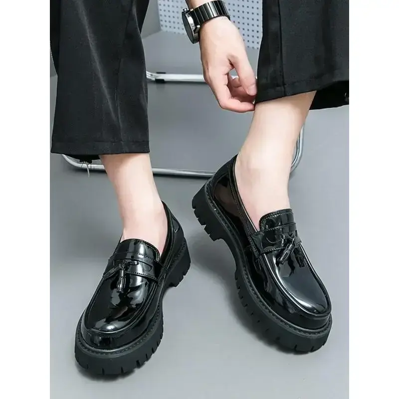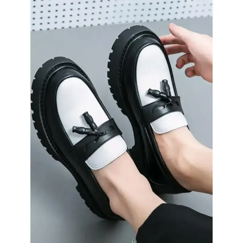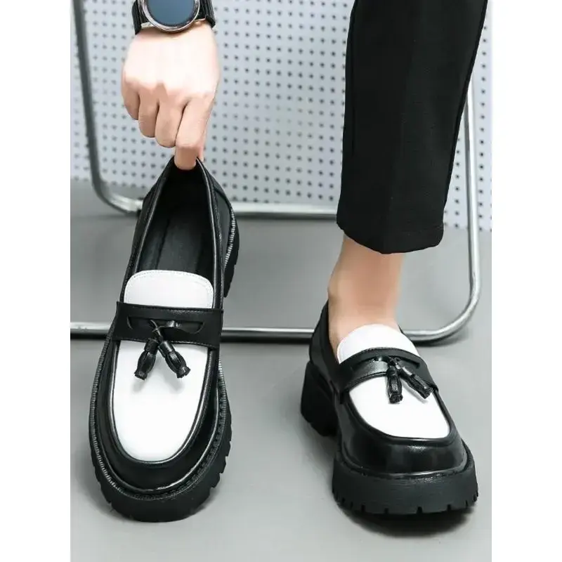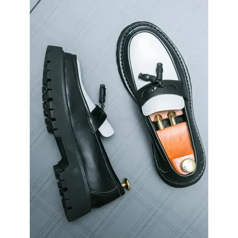 【Tassel Feature】: The tassel embellishments add a unique flair, setting these loafers apart from traditional options in the men's footwear category. 【Colorblock Pattern】: This pair features a distinctive colorblock pattern, providing a dynamic look that enhances any outfit while maintaining a professional appearance. 【Round Toe】: Constructed with a round toe shape, these loafers ensure a comfortable fit and ample room for movement, essential for daily wear. 【Medium Width】: Engineered with a medium width, these shoes accommodate various foot shapes, offering a balance between snugness and comfort. 【Lightweight Material】: Made with breathable PU material, these loafers are lightweight, ensuring ease of wear throughout all seasons without compromising durability.