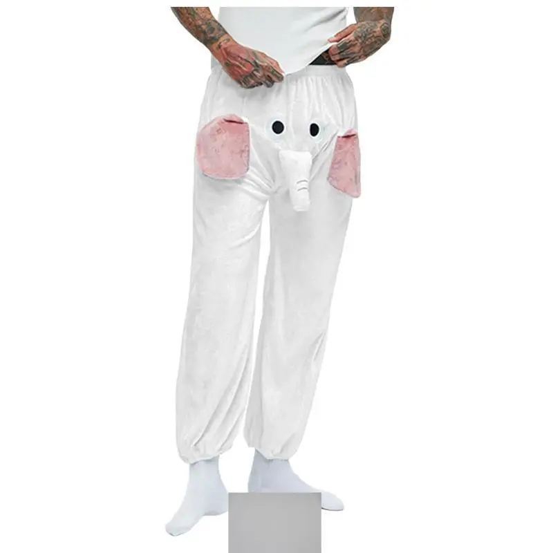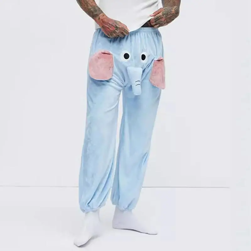 Men'S Funny Elephant Flannel Long Pants Casual Relaxed Fit Warm Sleeping Pants Breathable Tie-Foot Trousers Boys Home Clothes Pajama Fabric Loungewear
