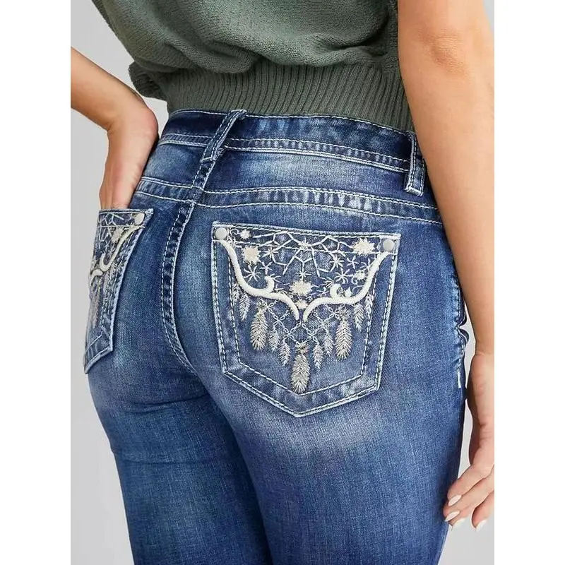 🌟 Embroidered Tight Height Waisted Denim Pants 🌟 Style and Comfort Discover the perfect blend of style and comfort with these Embroidered tight height waisted denim pants. These high rise jeans are designed to flatter your figure, offering a flared silhouette that enhances your silhouette. 🌟 These denim pants are ideal for women who seek both style and comfort in their wardrobe. They are a great choice for any occasion. 🌟 These high rise jeans make a wonderful gift for any occasion. They are a versatile and stylish choice for women. 🌟