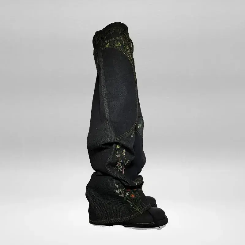 Y2K Baggy Jeans Trendy Floral Embroidery Streamlined Seams Unisex Streetwear Retro Harajuku Style Oversized Fit Pants