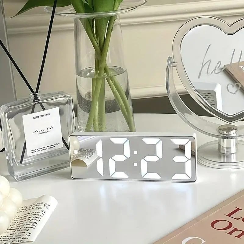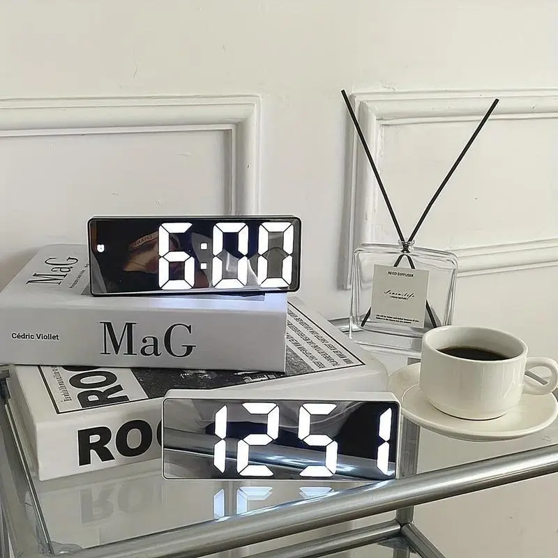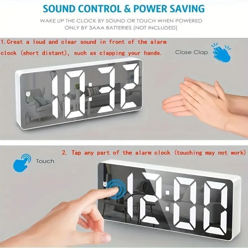 [Sound Control]: Activate and command the LED mirror alarm clock with just the sound of voice, offering convenience and futuristic functionality. [Snooze Feature]: Equipped with a snooze function, this digital alarm clock allows for precious extra minutes of sleep, making mornings more bearable. [USB Connectivity]: This desktop alarm clock can be powered via USB, ensuring it is always ready to use and easily chargeable with common devices. [Night Light Function]: Integrated with a night light feature, it gently illuminates your space, providing a soft glow that doesn’t disrupt sleep. [Plastic Material]: Constructed from plastic, this clock is lightweight yet durable, offering ease of placement and longevity in any room decor.