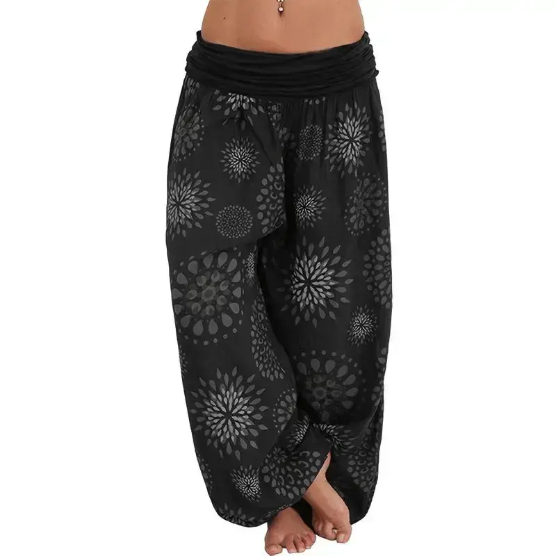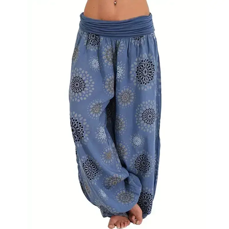 BohoFloralPrintHaremPants,VacationElasticWaistBeachPantsForSpring&Summer,Women'sClothing