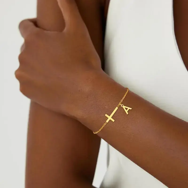 Cross Initial Bracelets: Our bracelet bright and shiny with smooth edges all around, which reflect the light beautifully, and make the bracelet a fashionable everyday accessory.Designed for stylish jewelry for women with taste Size: Inner circumference of the bangle bracelet is 6.5cm.Every bracelet comes with a letter pendant, please confirm your wrist size and desired letter before purchasing Material: Knot Initial bracelet is made of 18K Gold Plated sturdy, does not fade.And our dainty bracelets for women no lead, and nickel free, hypoallergenic Gifts: Teen Girls Gifts bracelet is your applicable choice as birthday gift to your mom, wife, friends or yourself. Pretty yet delicate bracelet, easy to match your clothing style and fit well for many occasions