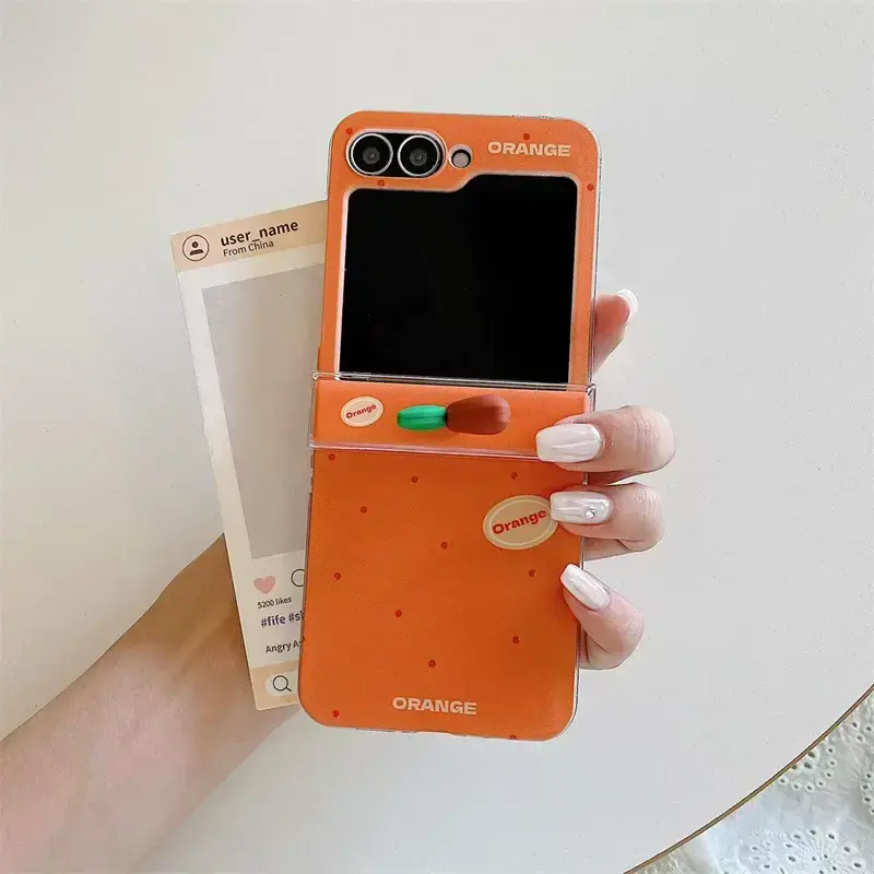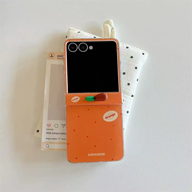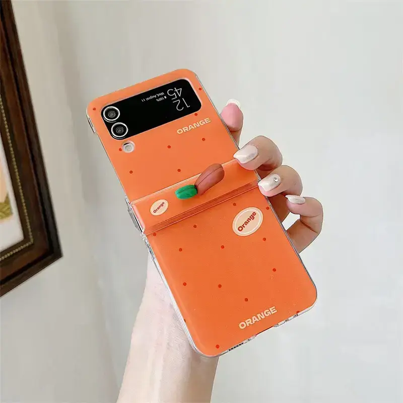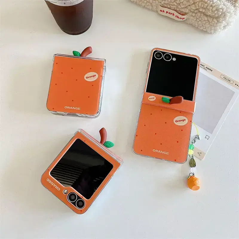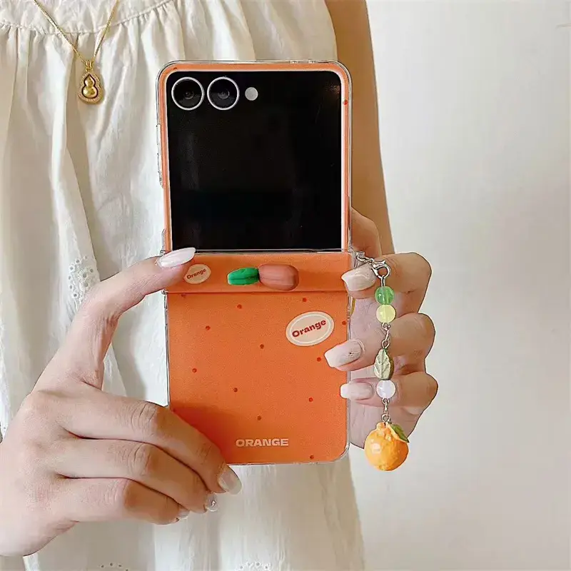 Korean Cute Orange Polka Dot Phone Case For Samsung Galaxy Z Flip 7 6 5 4 3 Cover with Charm Hinge Cases Flip6 Flip7 Hard Funda