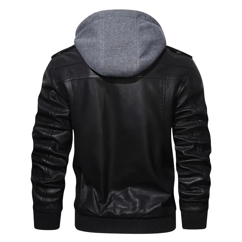 Premium Mens Hooded Leather Jacket - Fashionable Biker Style with Chic Multi Pockets, Durable Soft-shell for Casual Comfort(gift)Gift
