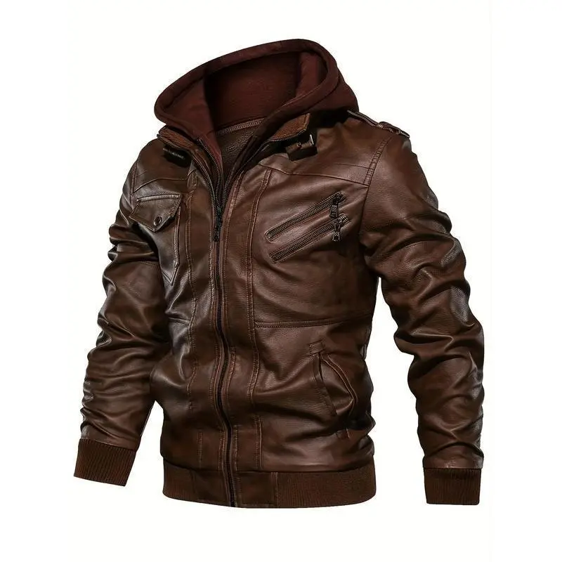 Premium Mens Hooded Leather Jacket - Fashionable Biker Style with Chic Multi Pockets, Durable Soft-shell for Casual Comfort