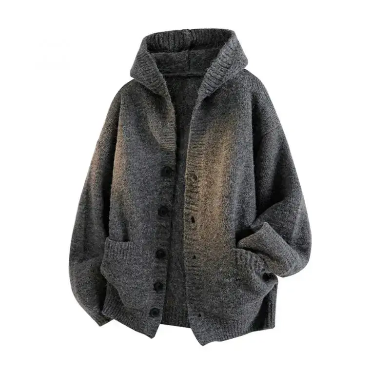 Hooded Cardigan Knitted Sweater Men's Autumn Winter Coat Seahorse Wool Lazy Loose Knitwear