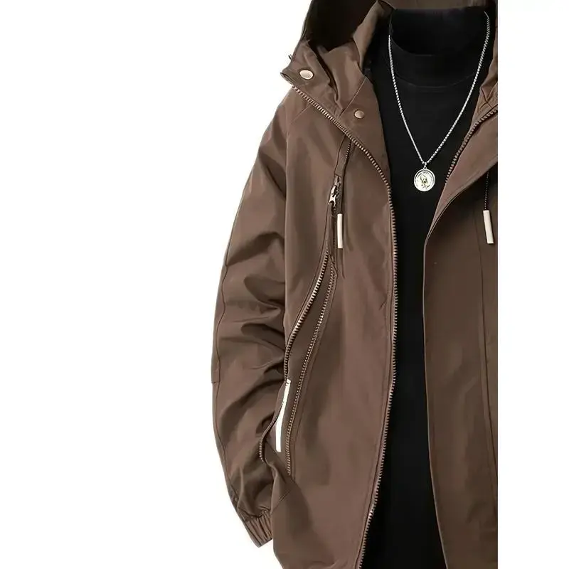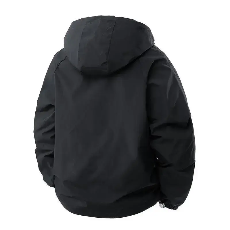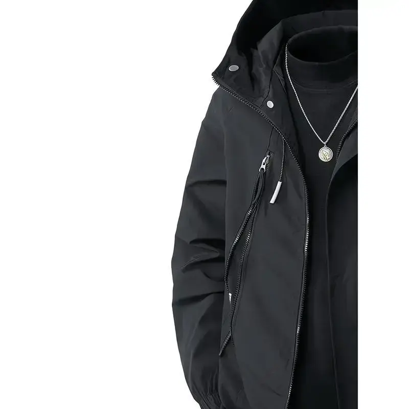 Men's Heavy-Duty Hooded Jacket - Windproof, Plus Size/Big & Tall, Black Menswear Coats