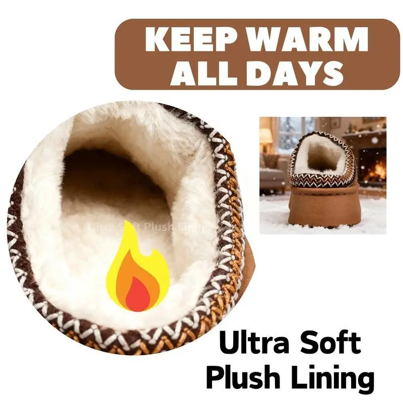 Step into elevated comfort with a 1.18-inch thick platform sole. This lightweight sole reduces foot fatigue and provides arch support, ensuring stability all day. Perfect for indoor and outdoor wear during fall and winter. The slippers are versatile and available in 4 colors. Premium Fuzzy Cotton Blend The premium fuzzy cotton blend traps heat and wicks moisture, keeping your feet cozy. The warm plush interior ensures comfort in cold weather. Enjoy all-day comfort with this unisex design. The soft, supportive foam insole conforms to the foot for lasting comfort. Textured Anti-Slip Sole The textured anti-slip sole with deep grooves ensures a firm grip on surfaces. The low-cut ankle design with a flexible collar prevents rubbing. Reinforced stitching ensures long-lasting use. The machine-washable lining maintains plush softness. Stylish and Practical These slippers are stylish and practical, adding subtle height while keeping your feet warm and cozy. Ideal for both indoor and outdoor use during the colder months.