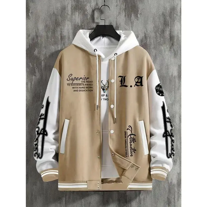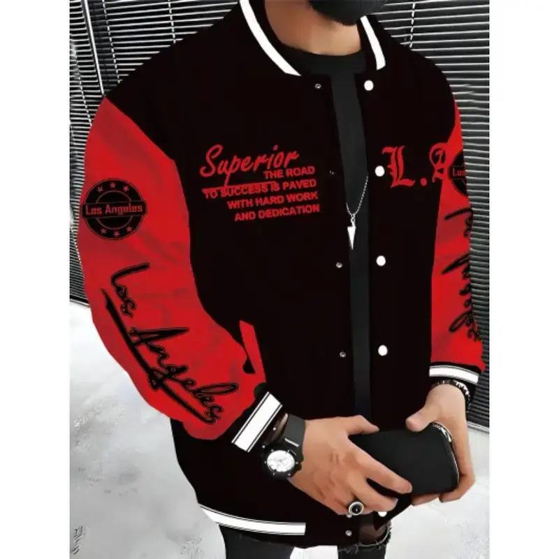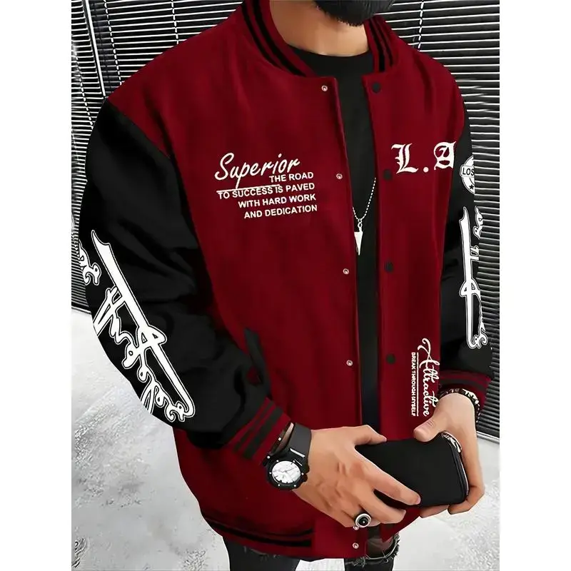 PrintPolyesterBaseballJacket-1pcCasualStylewithSlightStretch,RegularFit,ButtonClosure-Fall/WinterCollection
