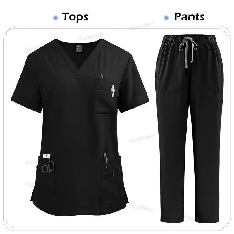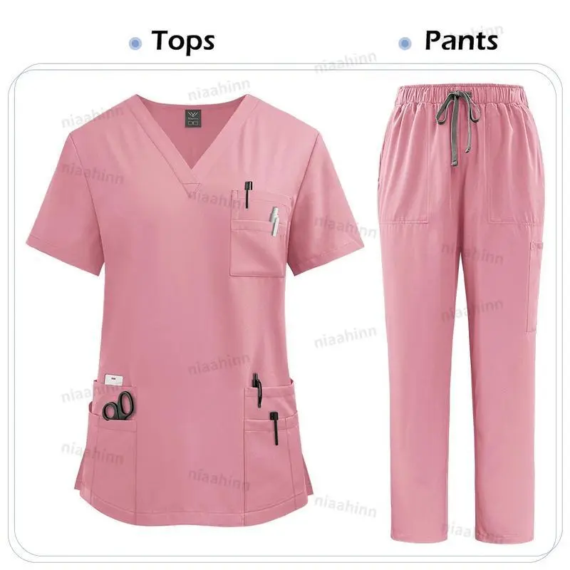 Fabric Type:TWILLModel Number:NH42168-20240603-3Item Type:Scrub SetsGender:Unisex,and Men,Male and femaleMaterial:94% polyester + 6% spandexBrand Name:NiaaHinnUse:MedicalCN:HubeiOrigin:Mainland ChinaItem type:Solid color nurse suits,Medical uniform,doctor set,AccessoriesStyle:Cleaning clothes, dustproof clothes, work clothes, uniformsmSize:S,M,L,XL,XXLColor:As shown in the figureSeason:Spring,Summer,Autumn,WinterDecoration:Pockets,V-neck scrubs tops,Multi functional pocket pantsFeatures:BreathableQuality:High Quality,Soft,sweat-absorbent,washableSleeve length: short sleeveApplicable places1:Beauty salon, waiter, pet shop, laboratory,Applicable places2:kitchen, landscape architect..medical clothing for:nurse scrubs setNurse uniforms:Medical uniformsUniforme mujer:Medical uniforms for nurse Elastic Scrub Set Surgical Uniform Elastic Material:Crafted from stretchable fabric, this scrub set ensures comfort and ease of movement. Versatile Use:Ideal for medical, dental, and veterinary professionals, this uniform suits various work environments. Complete Set:This V-neck short-sleeved tops and pants suit provides a complete medical uniform solution. Professional appearance: The uniform design provides a professional appearance, with a pure color and minimalist style. Availability:Available in bulk, this scrub set is an economical choice for medical facilities and institutions.