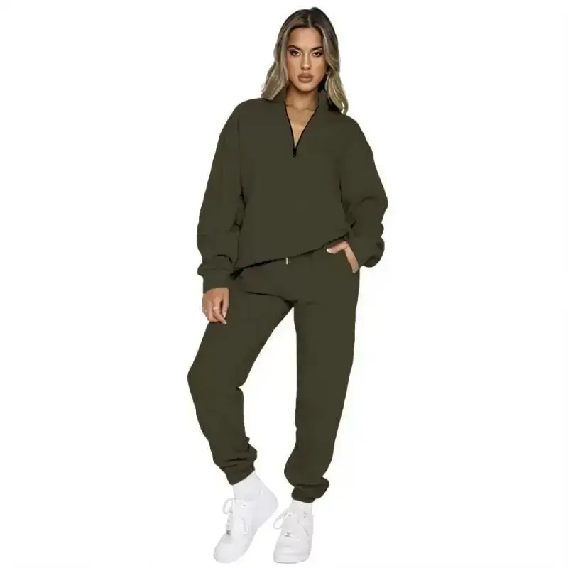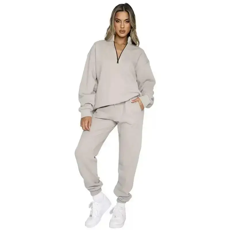 [Half - Zip Collar]: Features a stylish half - zip collar, adding a touch of chic and making it easy to put on and take off. [Oversized Fit]: Designed with an oversized silhouette, providing a relaxed and trendy look that's perfect for casual wear. [Polyester Fabric]: Crafted from polyester, it's durable, lightweight, and offers a smooth feel against the skin. [Elastic Cuffs]: Comes with elastic cuffs on both the sleeves and pants, ensuring a snug fit and keeping the shape well. [Convenient Pockets]: Equipped with practical pockets on the pants, offering handy storage for small essentials. [Easy Care]: Machine washable, super convenient for daily maintenance. [Versatile Occasions]: Ideal for casual outings, lounging at home, or running errands, combining comfort and style. [Seasonal Use]: Suitable for multiple seasons, especially great for spring and fall when you need a balance of warmth and breathability.