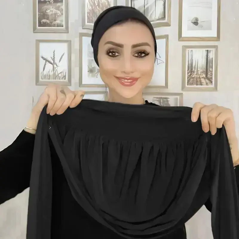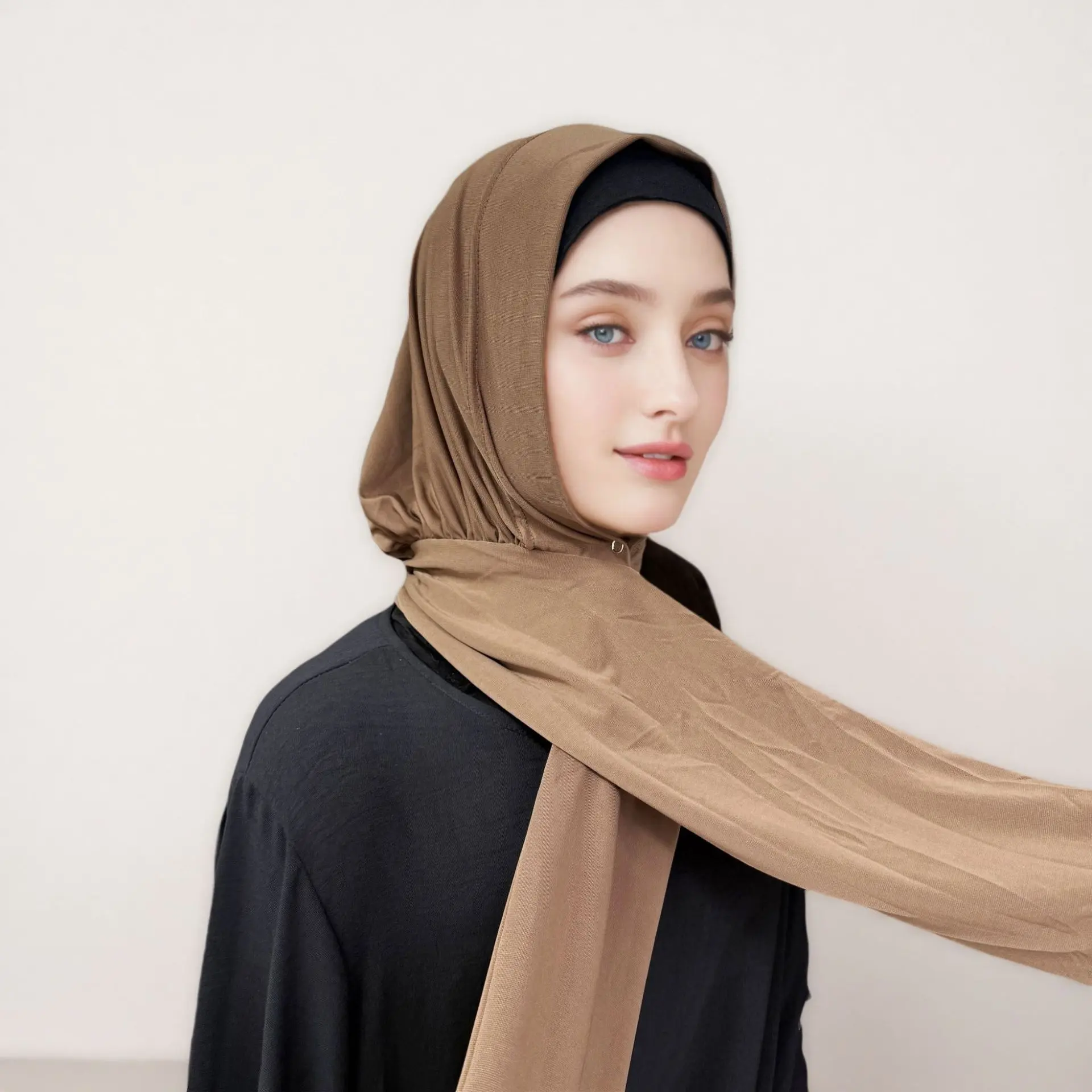 1pc Jersey Instant Hijab for Women, Elastic Polyester 100% Knitted Muslim Headscarf with Snap Closure, Lightweight Adjustable Turban Cap, Religious Theme Solid Color Scarf, Quick Wear Scarf | Snap Closure Scarf | Polyester Headscarf