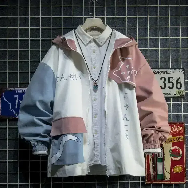 New 2025 Spring Woman Hooded Cute Shark Print Japanese Style Patchwork Teen Hoodies Jacket Fashion Harajuku Women Sweatshirt Pink Womenswear